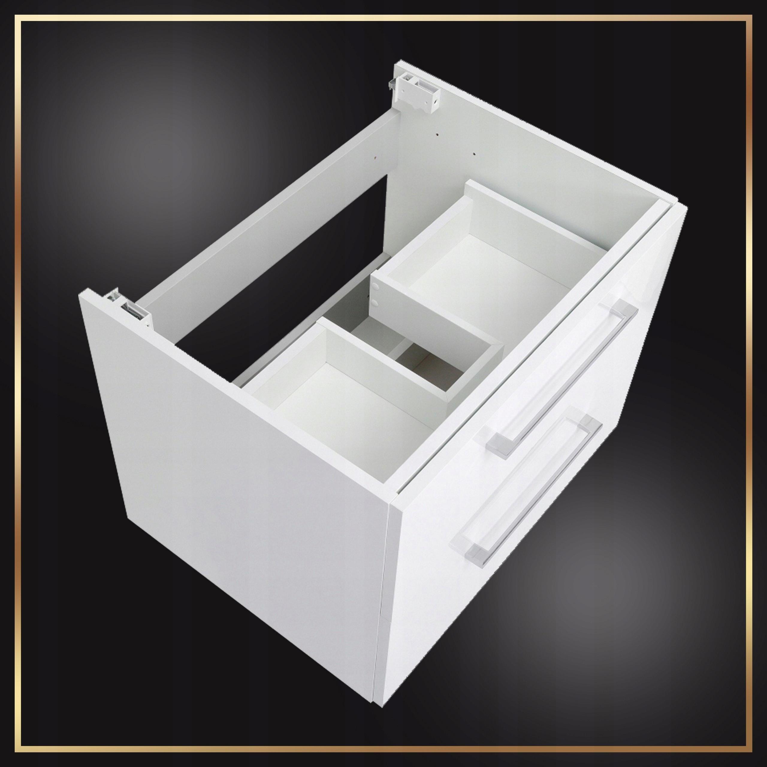 ✅ Wysoki połysk i styl: Zarówno korpus, jak i front szafki pokryte są lakierem na wysoki połysk, co nie tylko dodaje meblowi nowoczesnego charakteru, ale także ułatwia utrzymanie go w czystości.