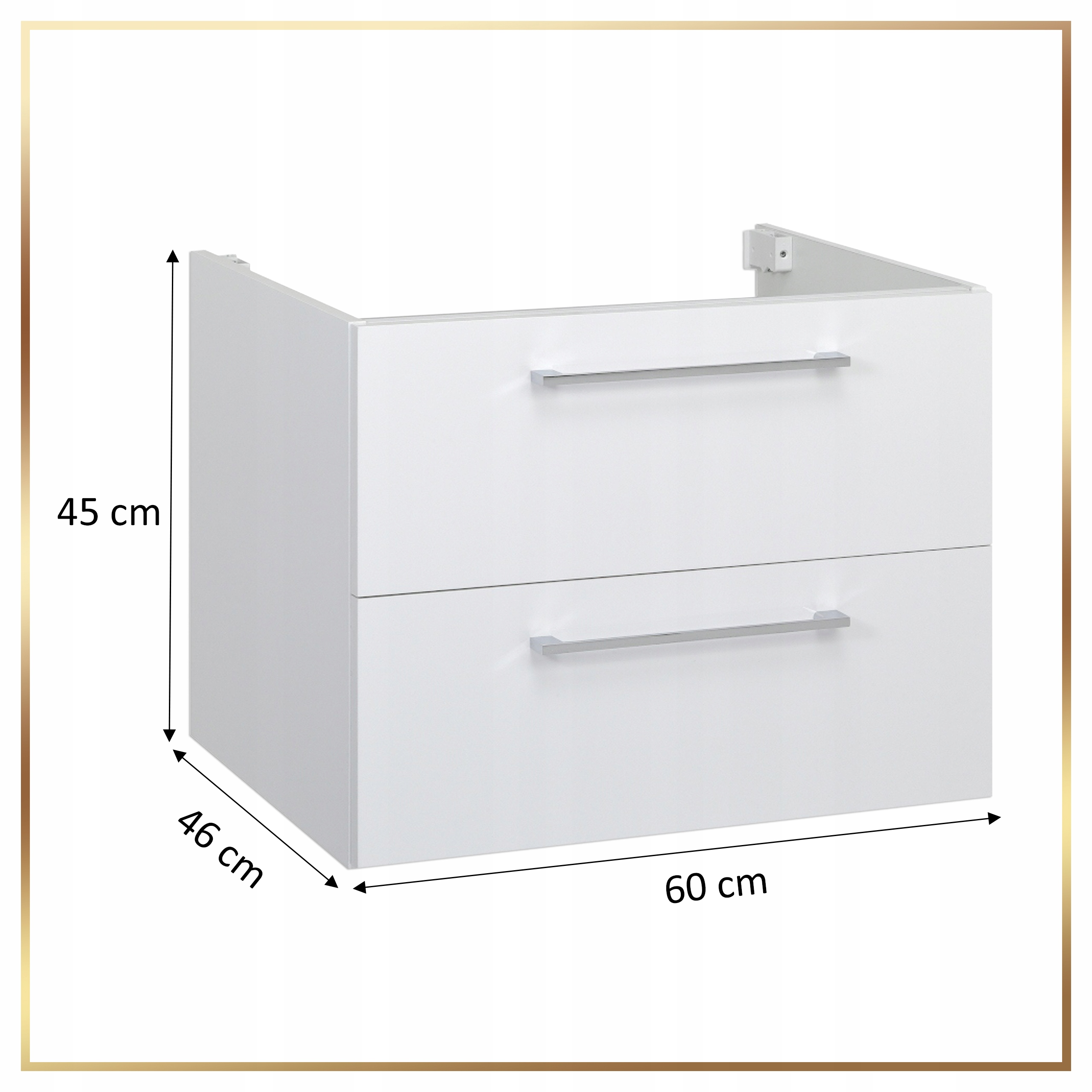 ✅ Funkcjonalność i komfort użytkowania: Szafka posiada dwie pojemne szuflady z systemem cichego domykania, chromowany metalowy uchwyt oraz przemyślane rozwiązania takie jak wycięcie na syfon w górnej szufladzie, które umożliwia łatwą instalację i optymalne wykorzystanie przestrzeni.