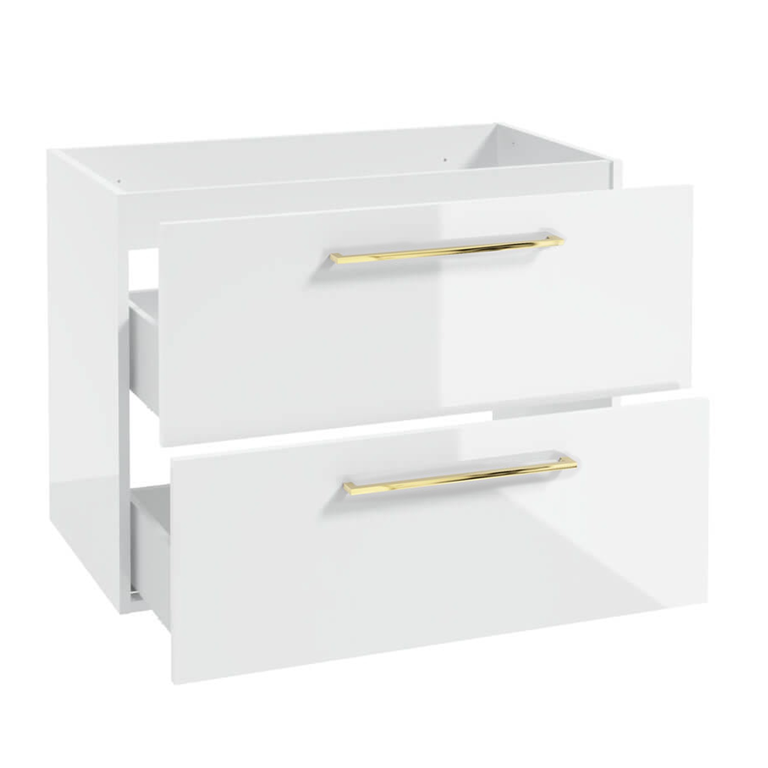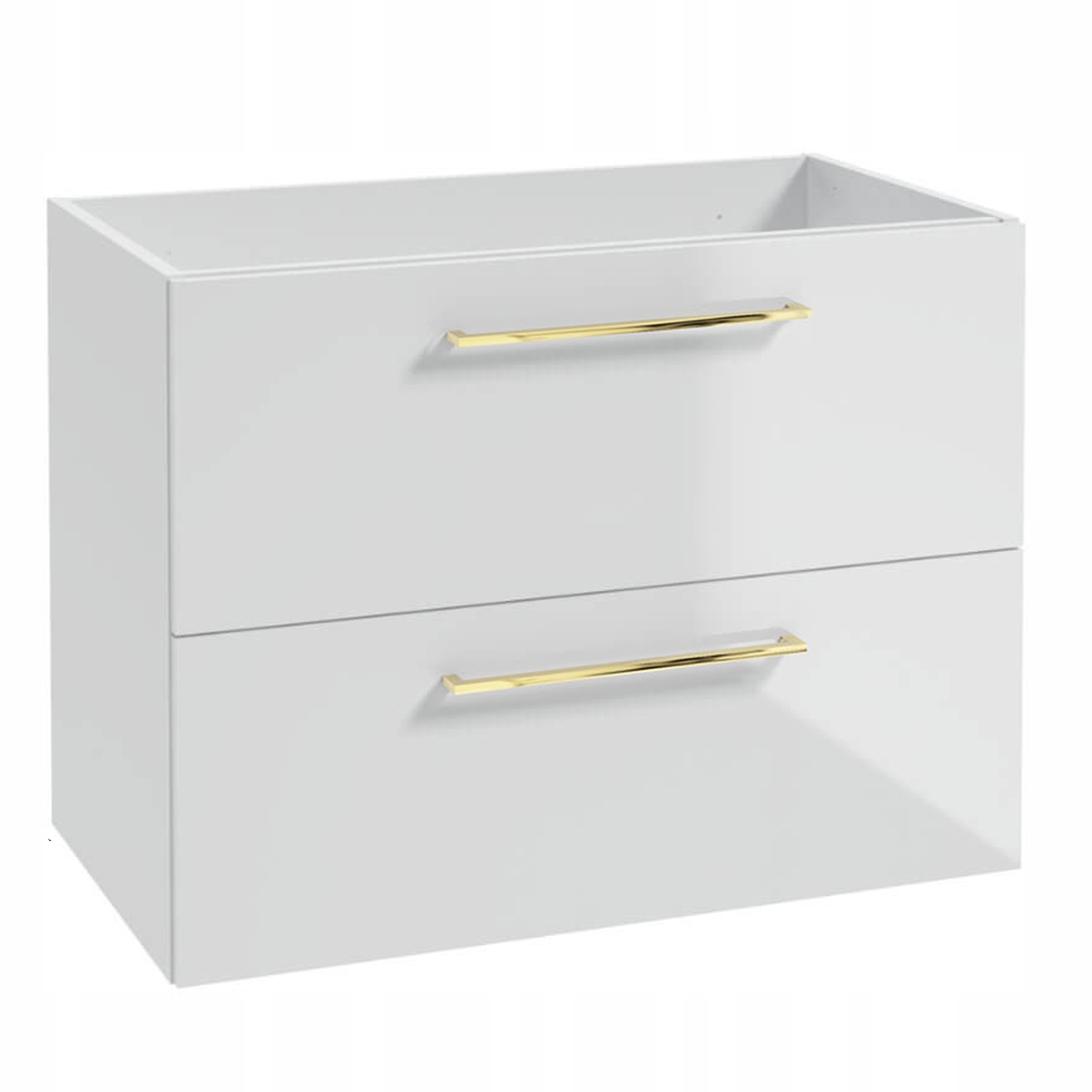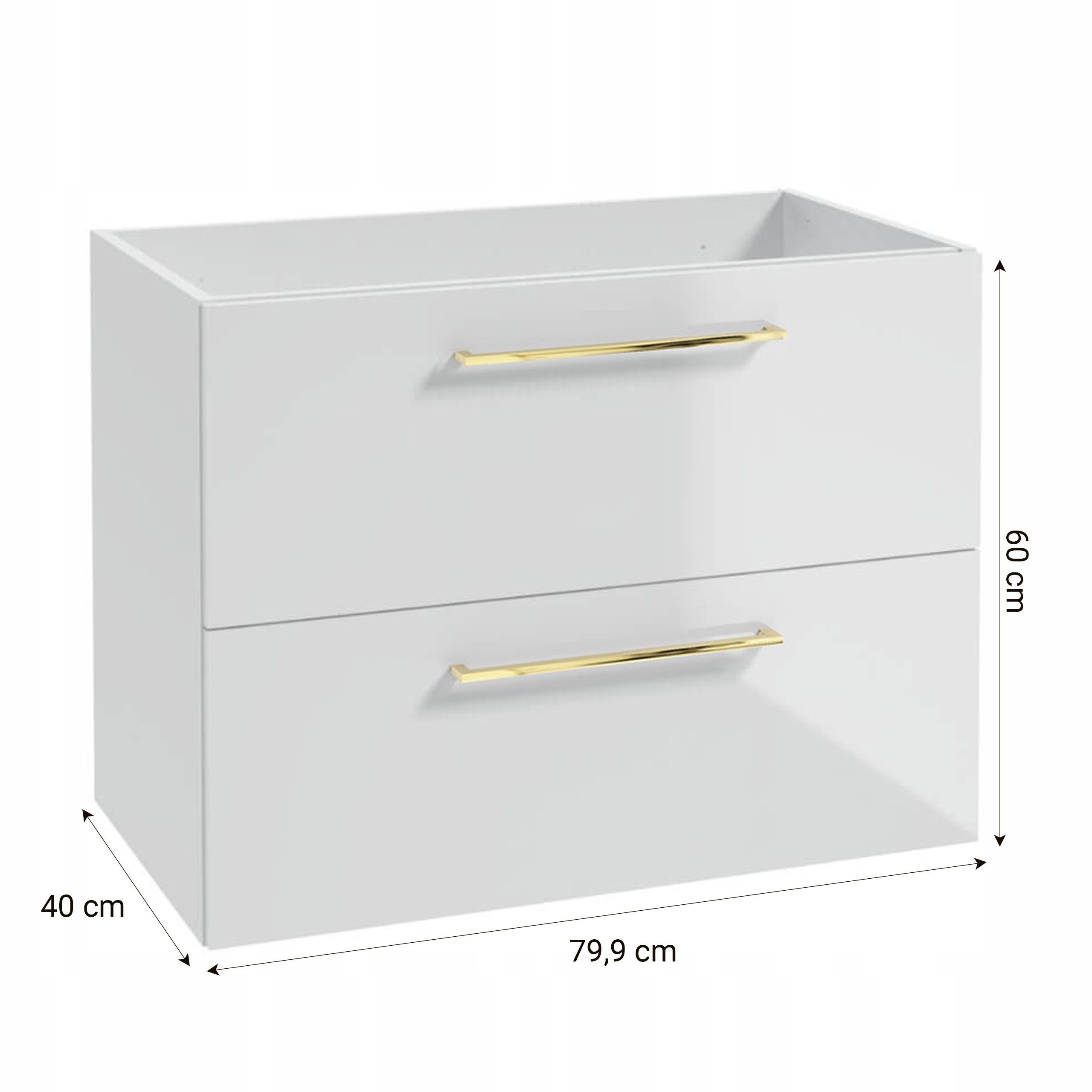 Biała Szafka pod Umywalkę do Łazienki 80x40 Wisząca Połysk Złote Uchwyty