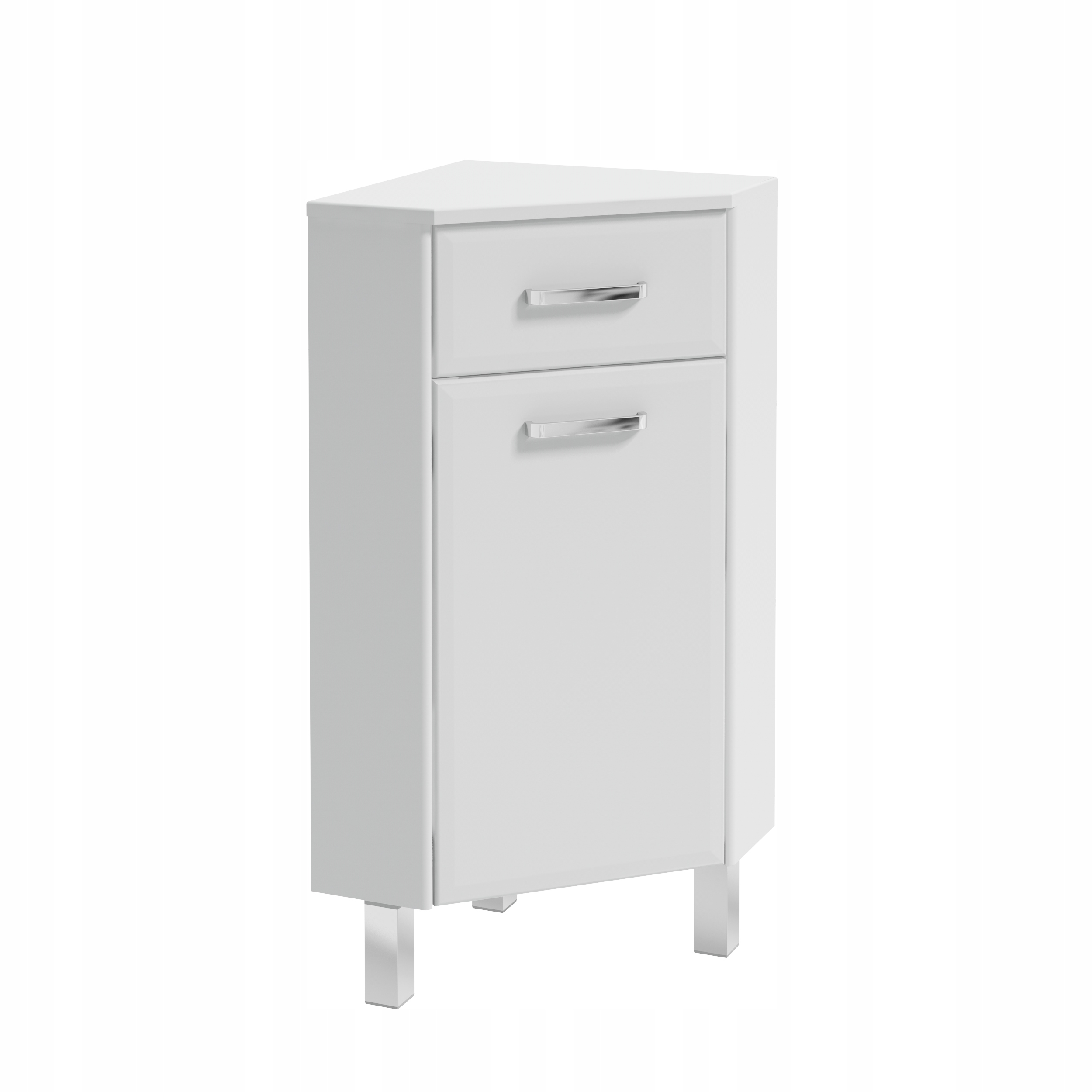Biała Szafka Półsłupek do Łazienki Stojąca Narożna Połysk 1 Drzwi Szuflada