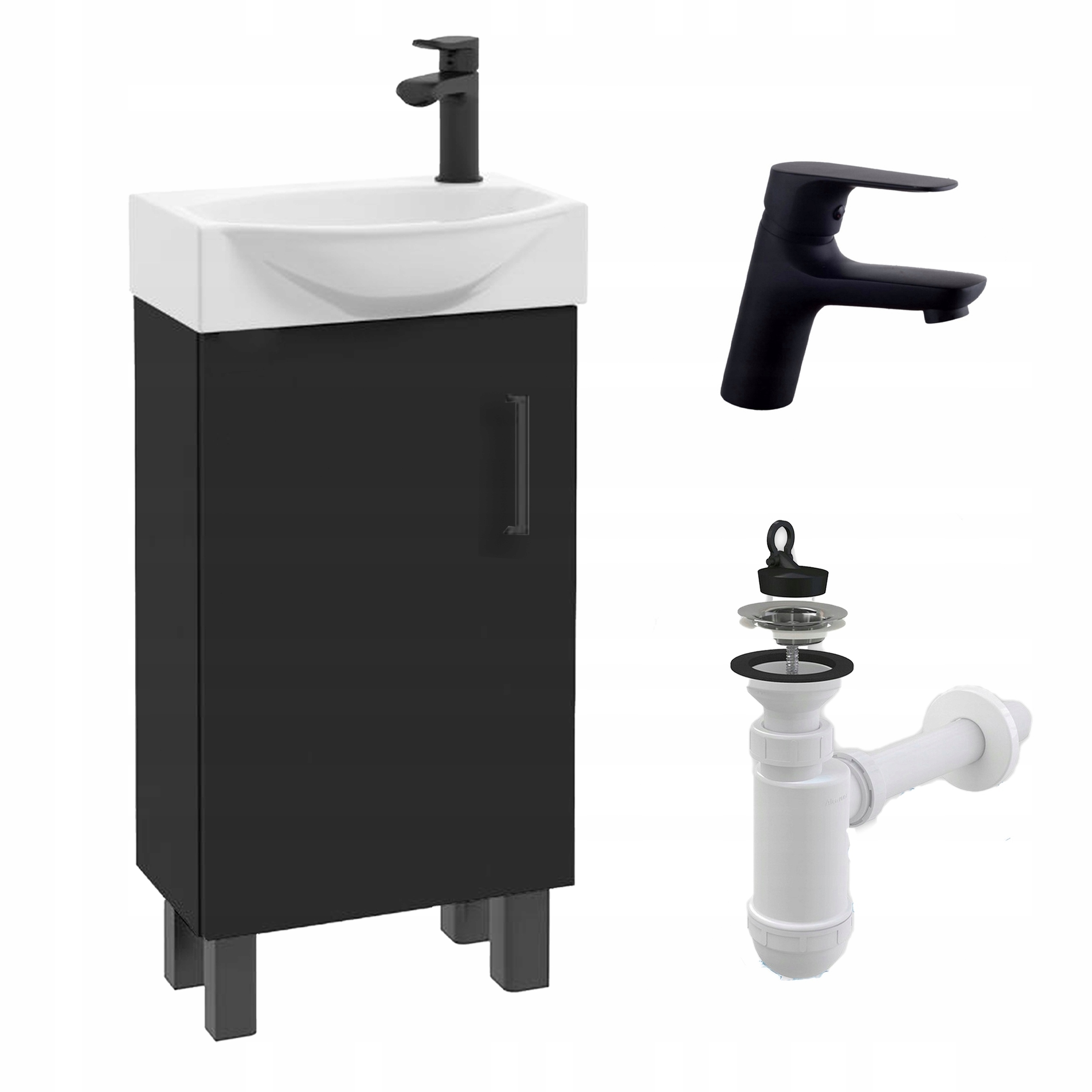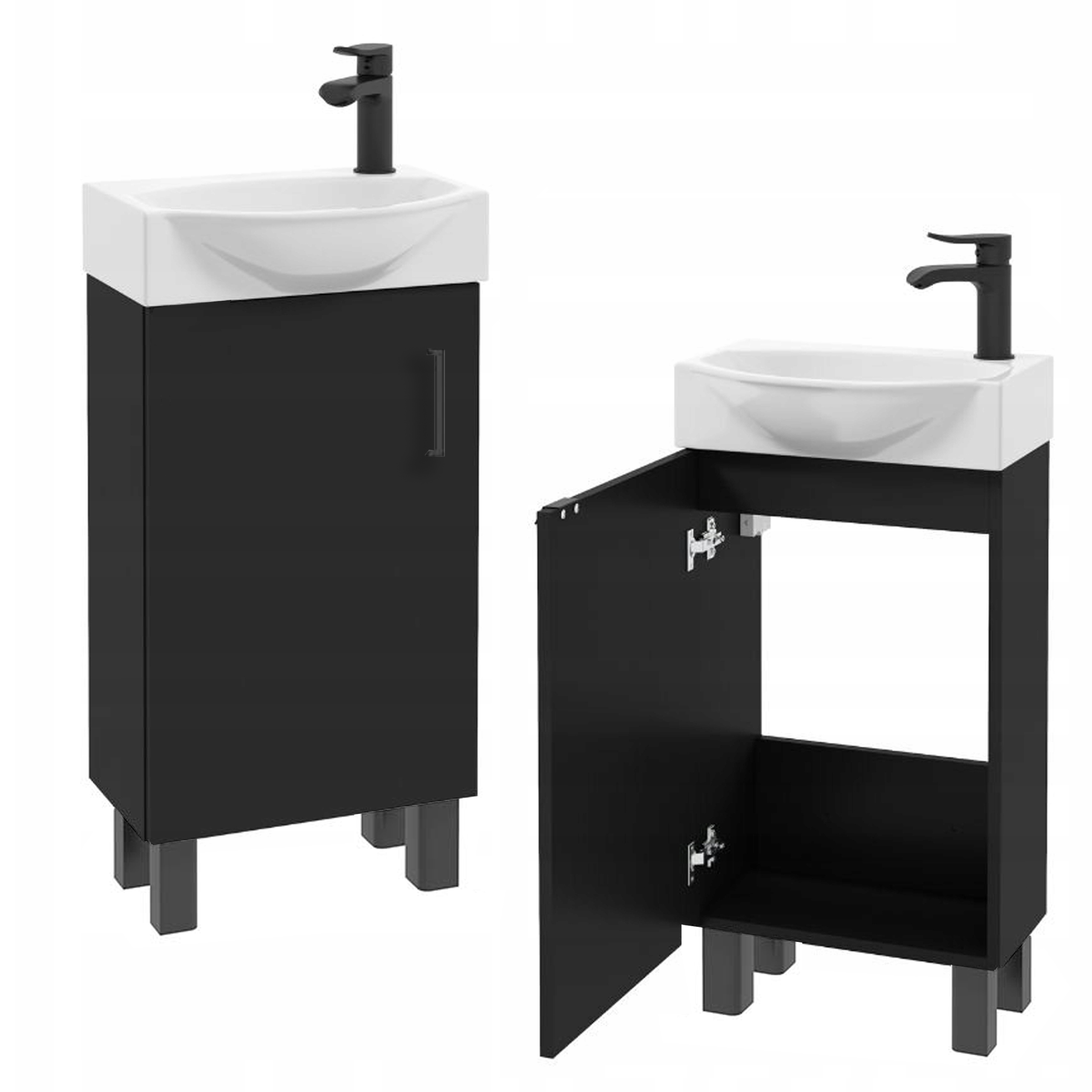 Szafka do Łazienki Stojąca z Umywalką 40 x 22 cm Czarna Matowa z Baterią