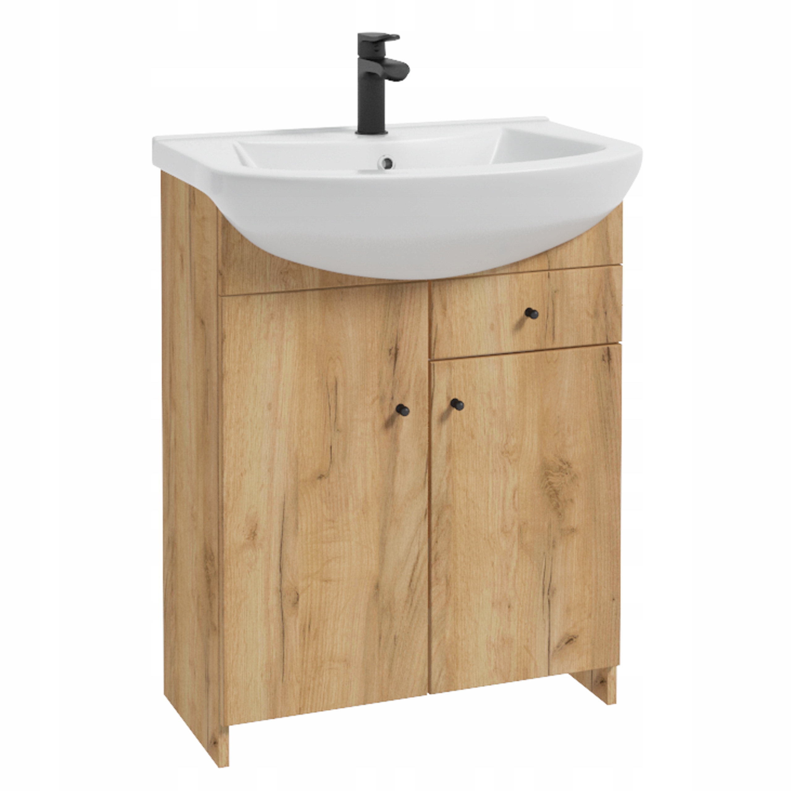 Szafka do Łazienki z Umywalką 65 cm Dąb Złoty Matowa Stojąca z Szufladą