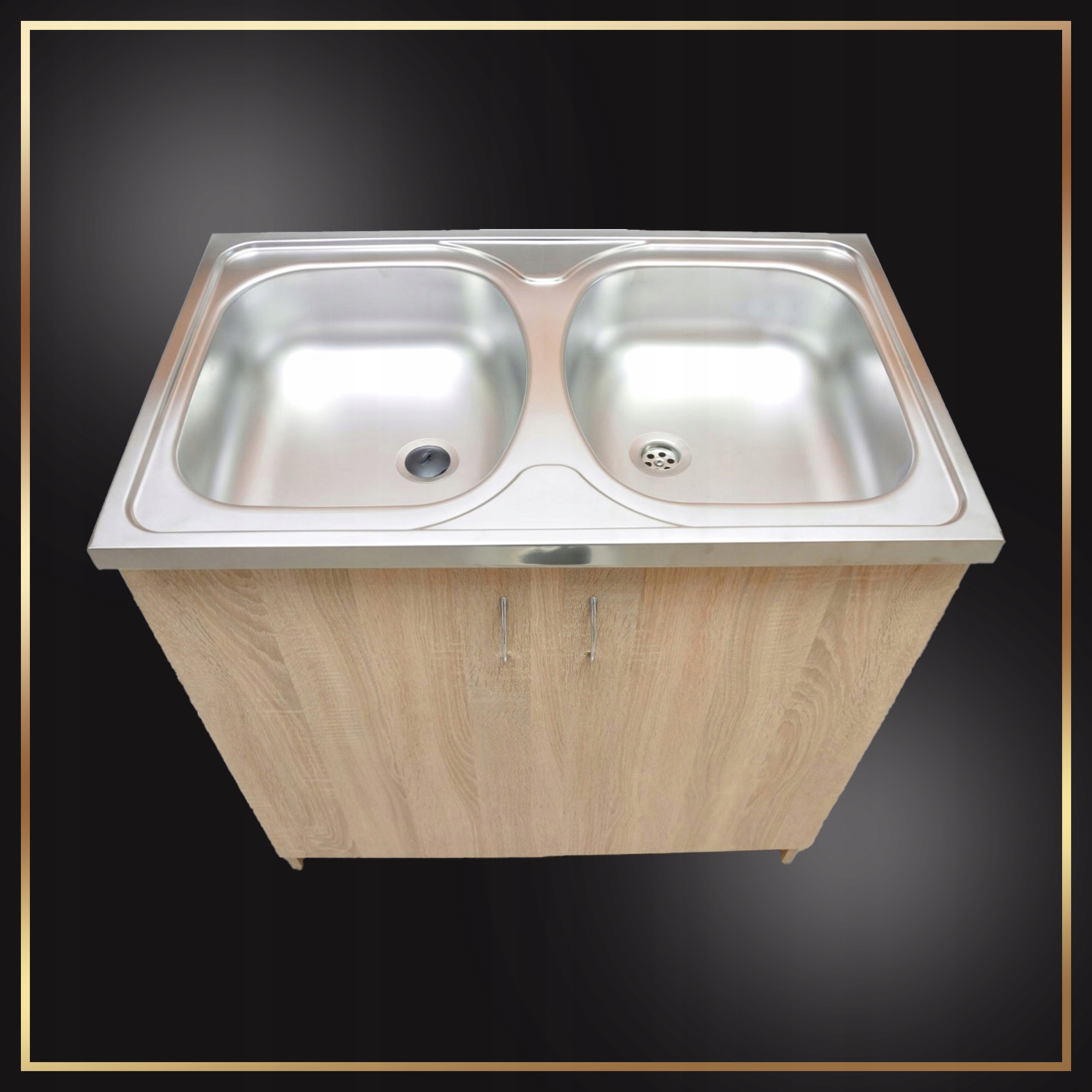 Zestaw zawiera szafkę w kolorze dębu sonoma o szerokości 80 cm, dwukomorowy zlew wykonany ze stali nierdzewnej, baterię kuchenną i syfon z możliwością podłączenia zmywarki. Dodatkowo oferujemy bezpłatne wiercenie otworu na baterię.