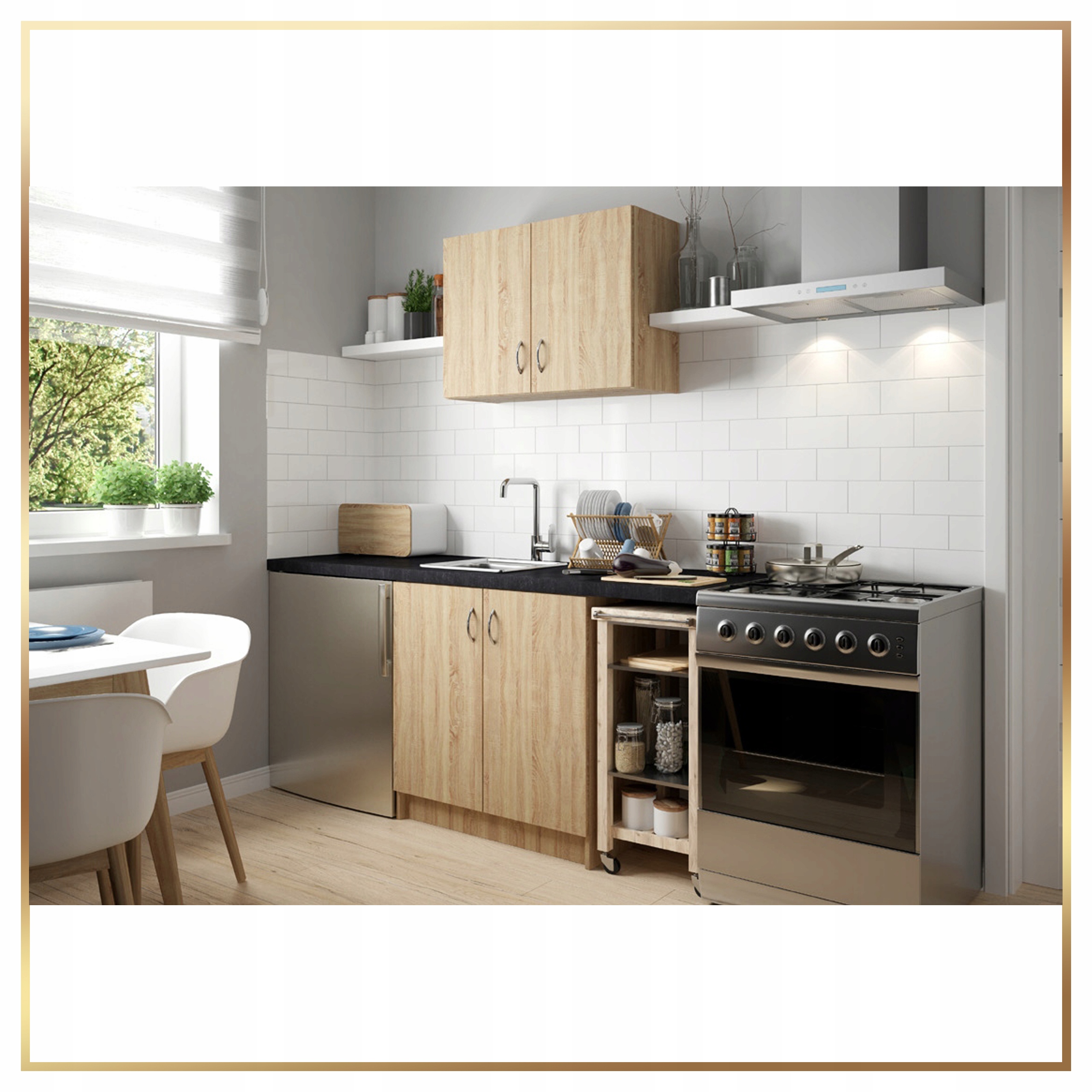⭐️ Kulinarne Mistrzostwo: Zestaw do Kuchni w Odcieniach Dębu Sonoma z Dwukomorowym Zlewozmywakiem, Baterią i Syfonem