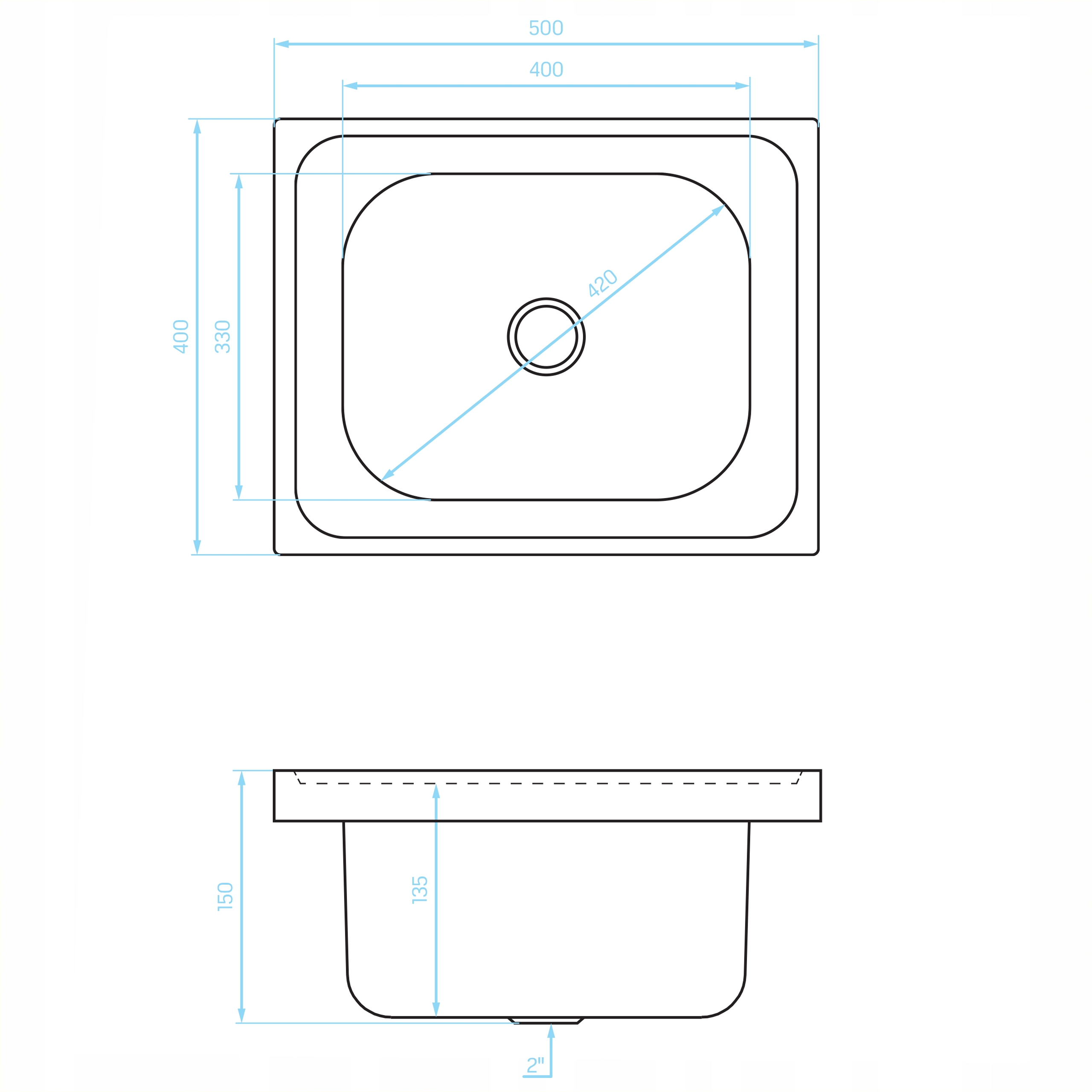 - Zlewozmywak jest wykonany z wysokiej jakości stalowej blachy nierdzewnej o grubości 0,5 mm, co zapewnia odporność na zadrapania, odbarwienia oraz szok termiczny.
