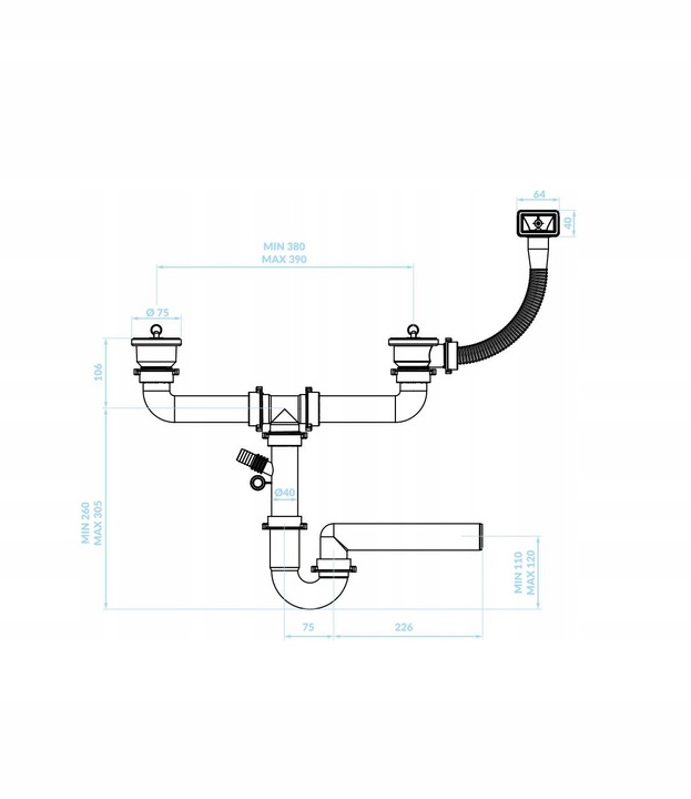 ✅ Do zestawu dołączony jest syfon wraz z wyjściem na zmywarkę