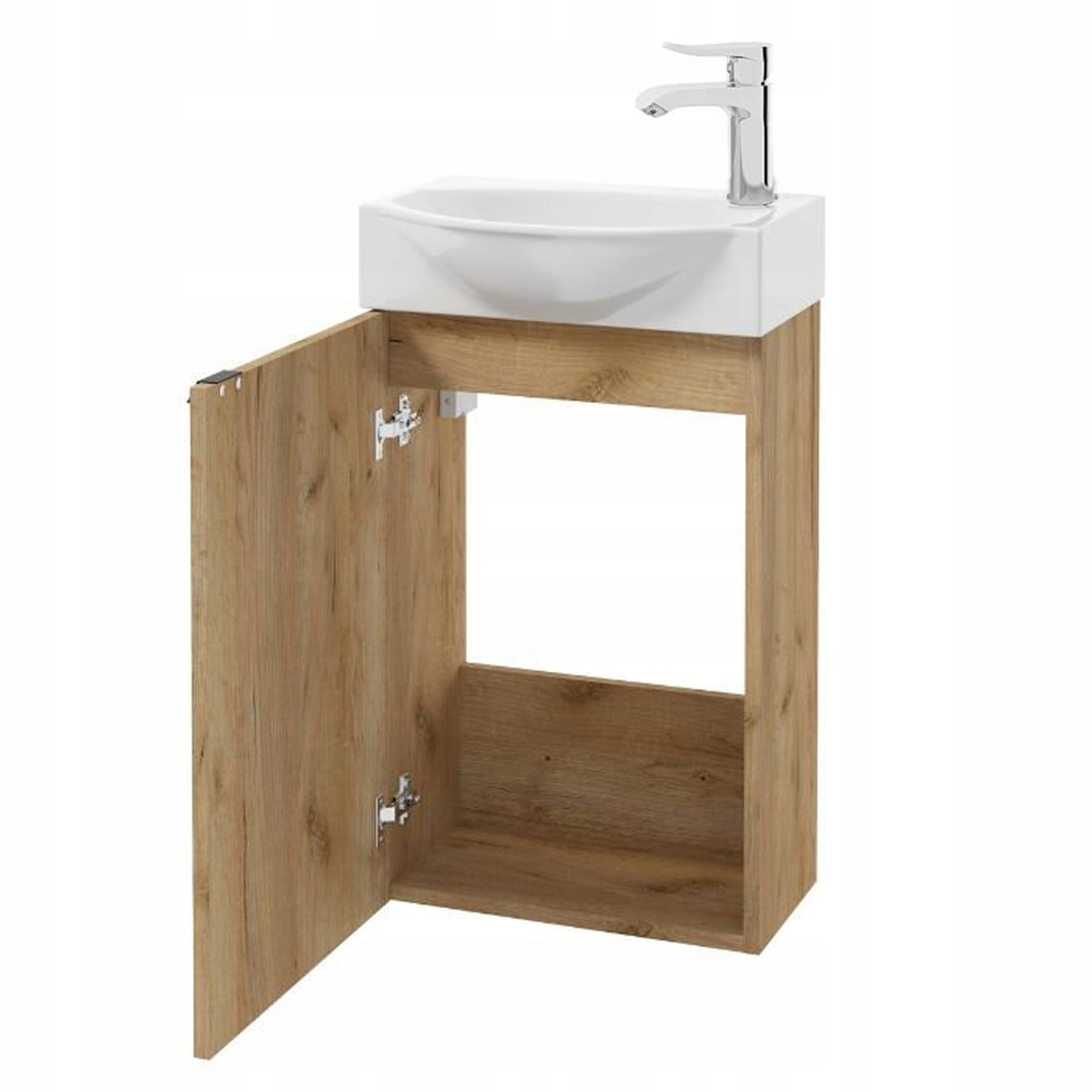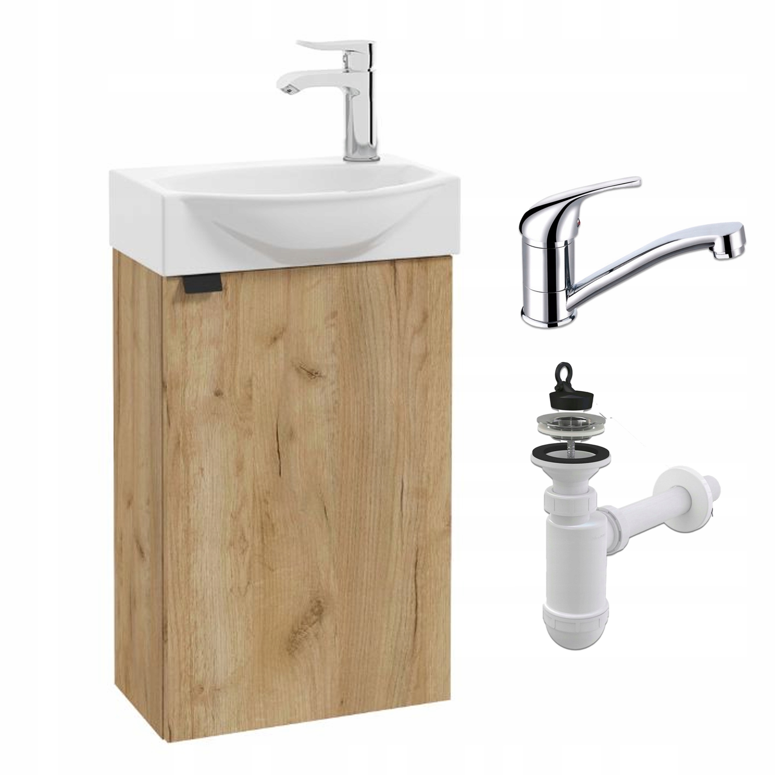 Szafka Łazienkowa 40 cm z Umywalką Wisząca Dąb Craft Złoty Bateria Obrotowa