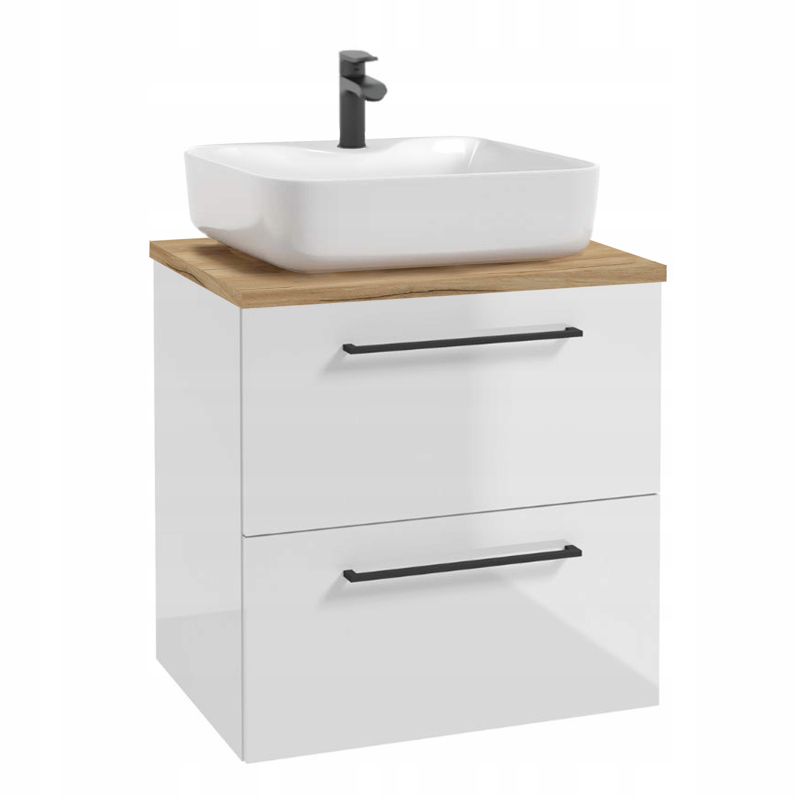 Szafka Łazienkowa Biała Połysk 60 x 41 cm z Blatem Dąb Złoty Cichy Domyk