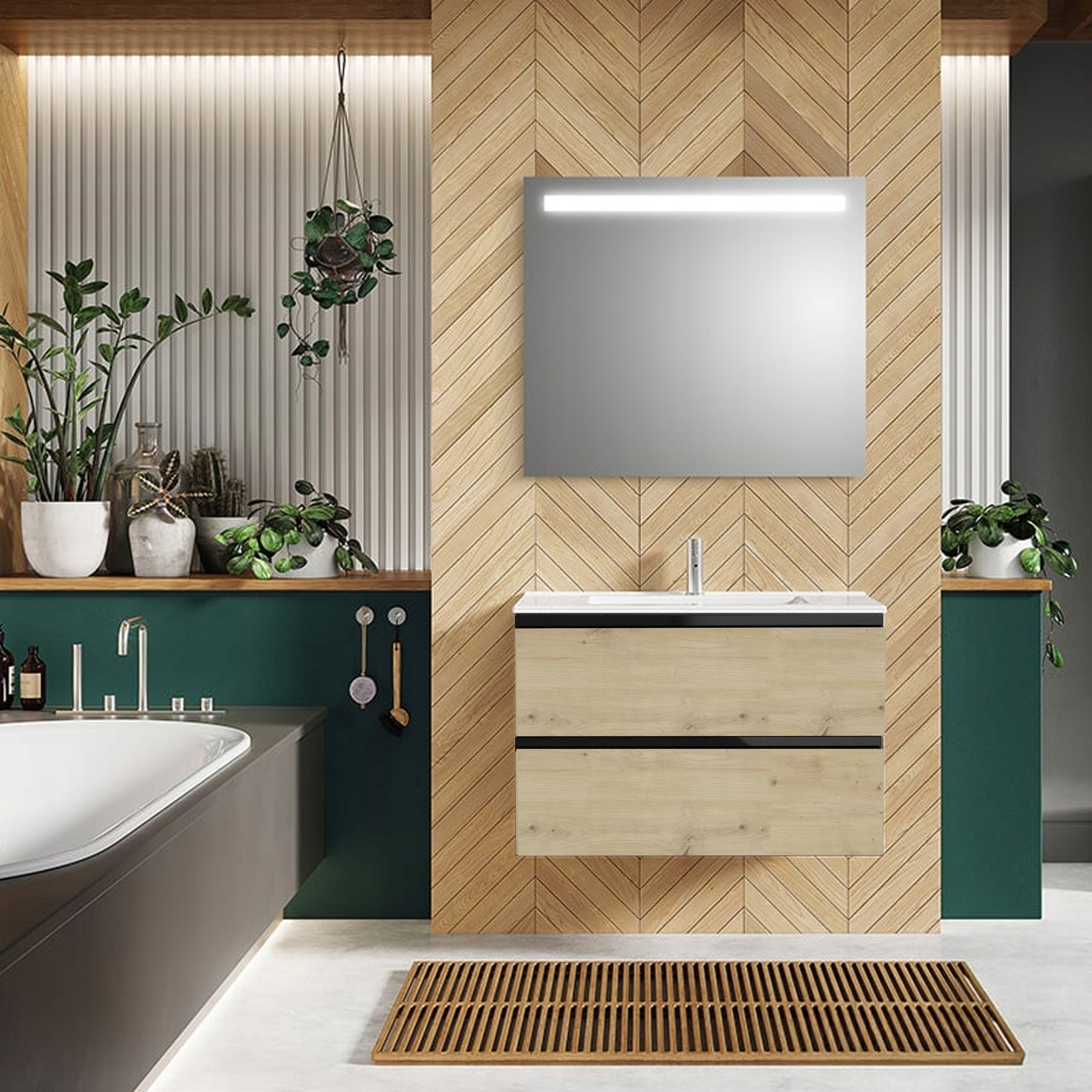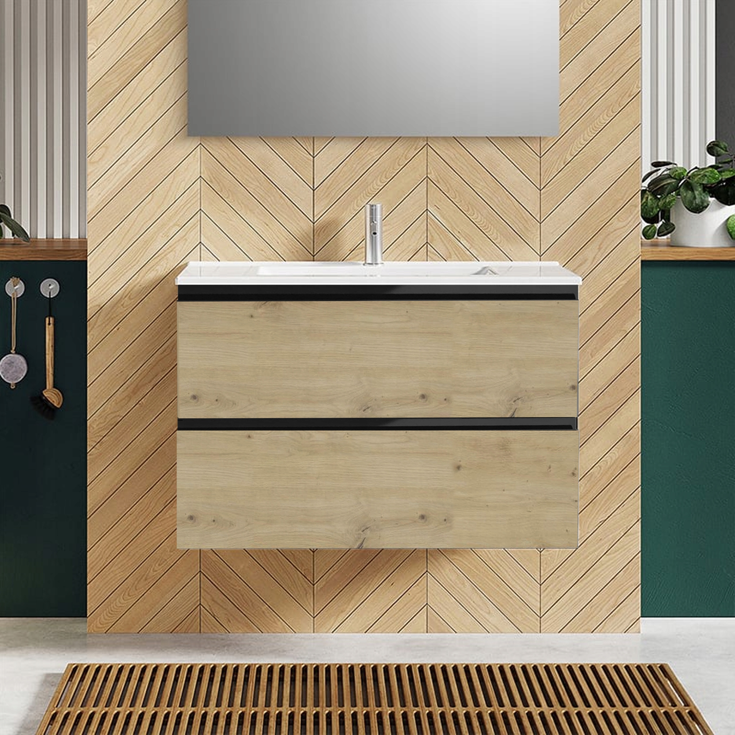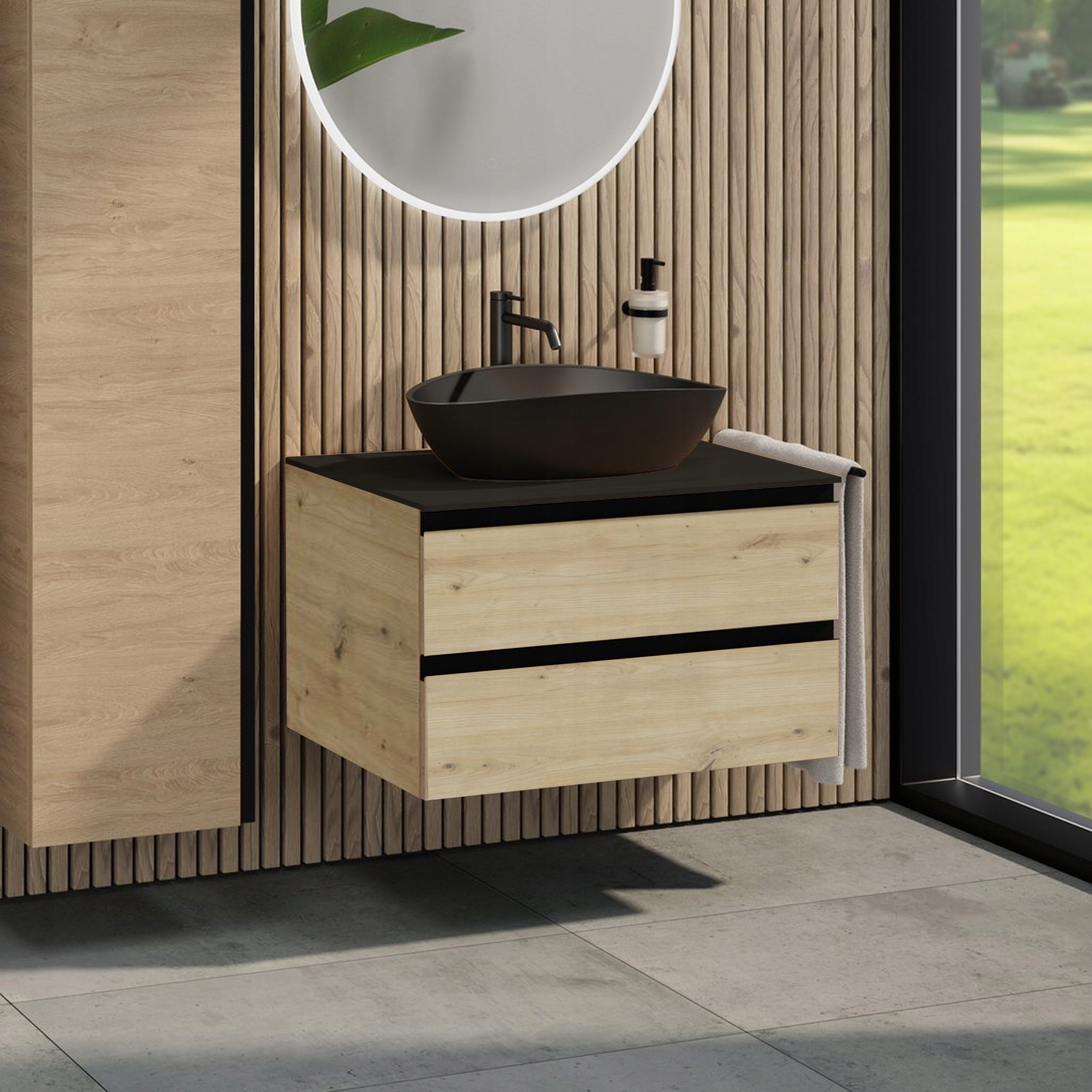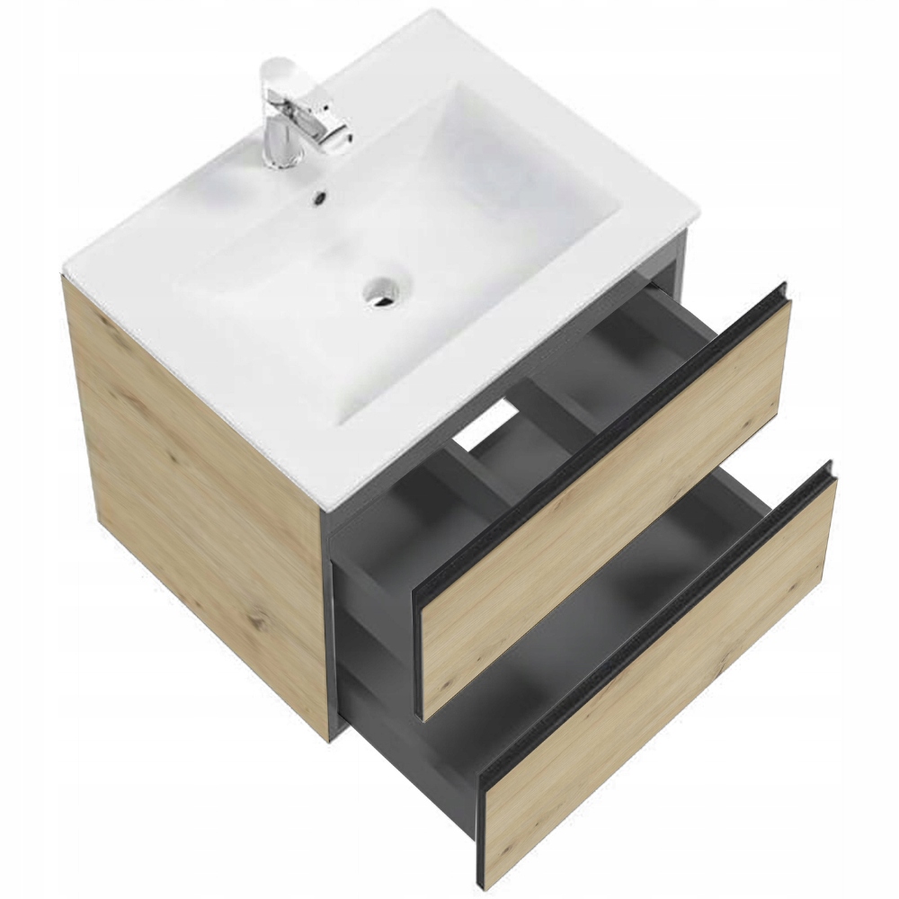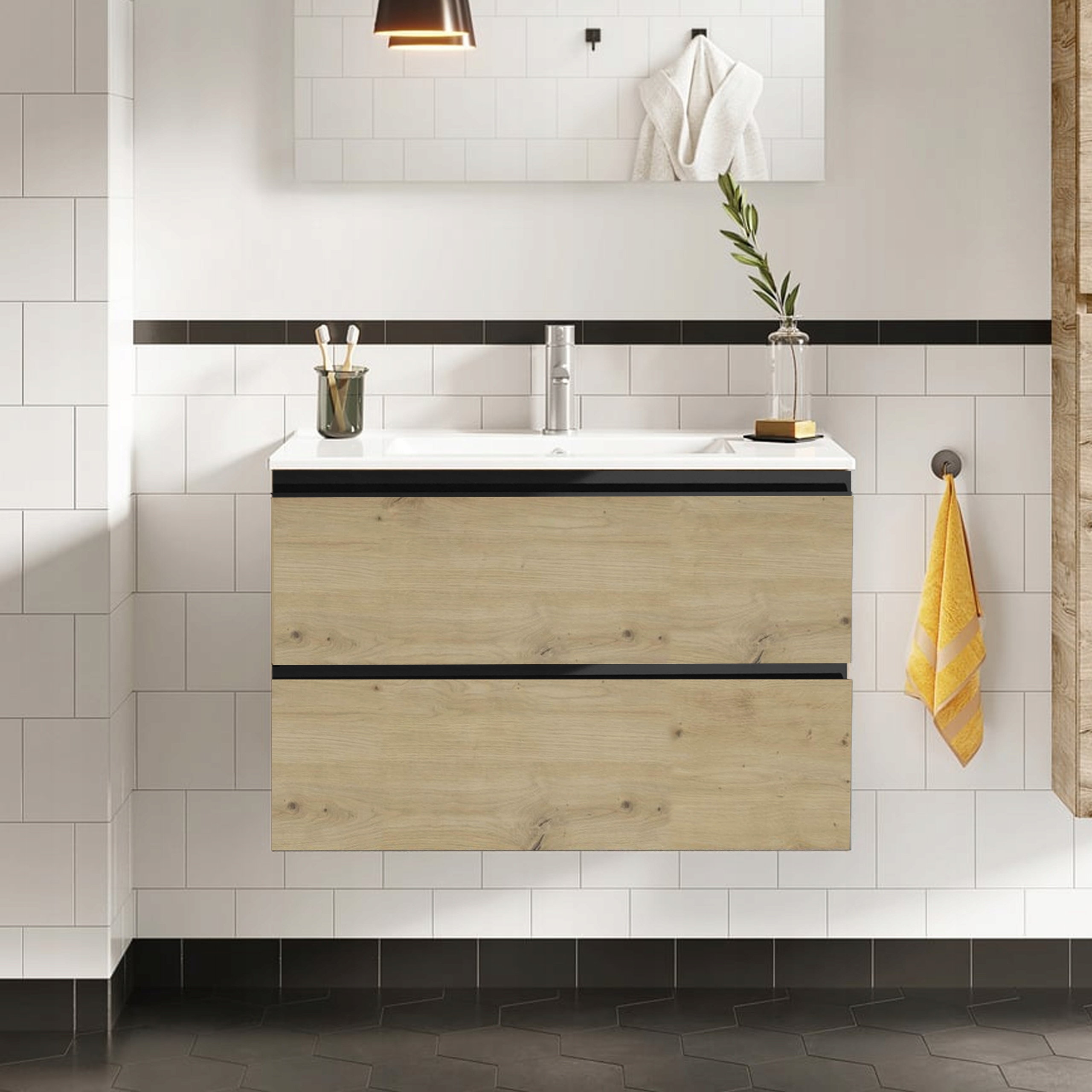 Szafka Łazienkowa Wisząca Dąb Artisan z Umywalką 80 cm Szuflady SoftClose