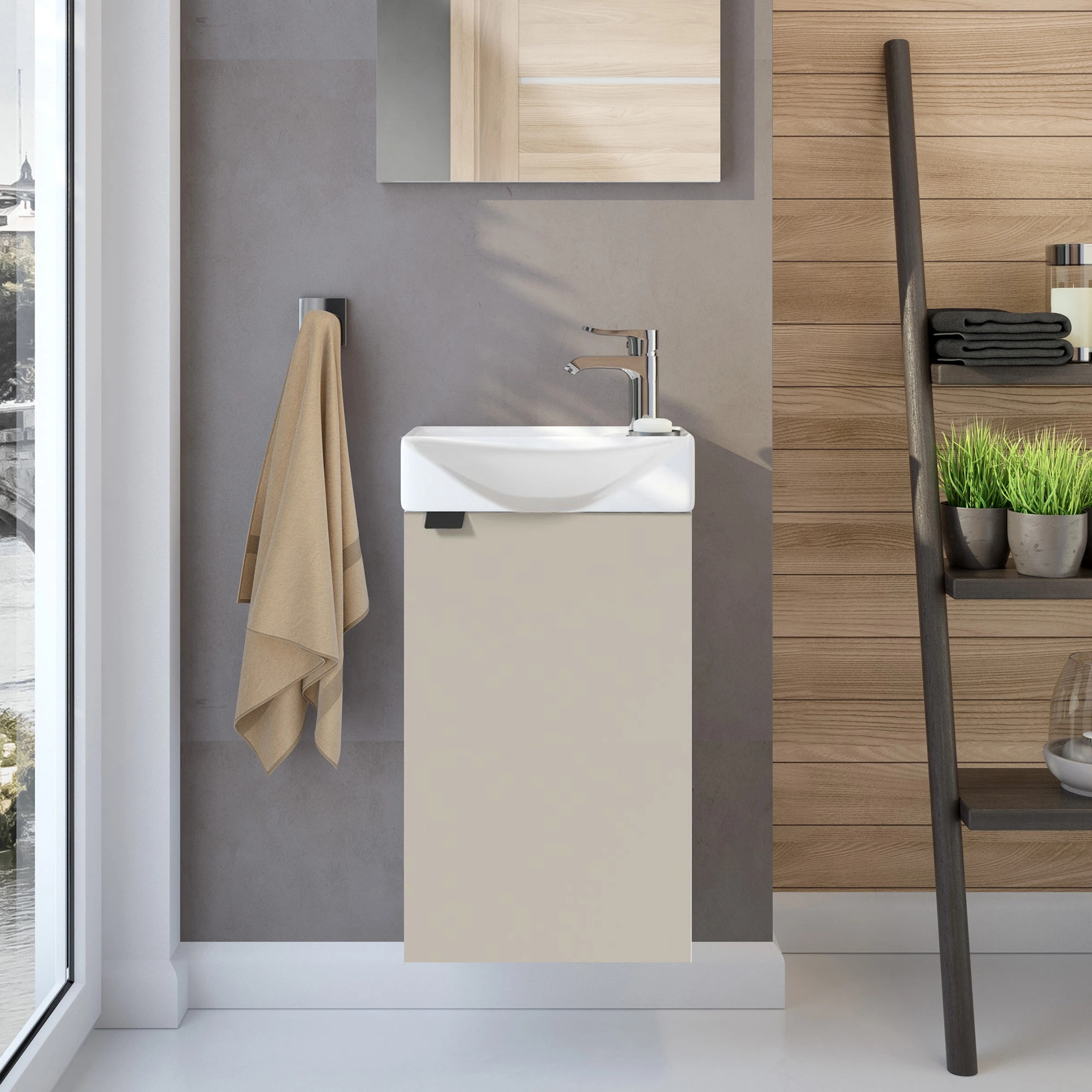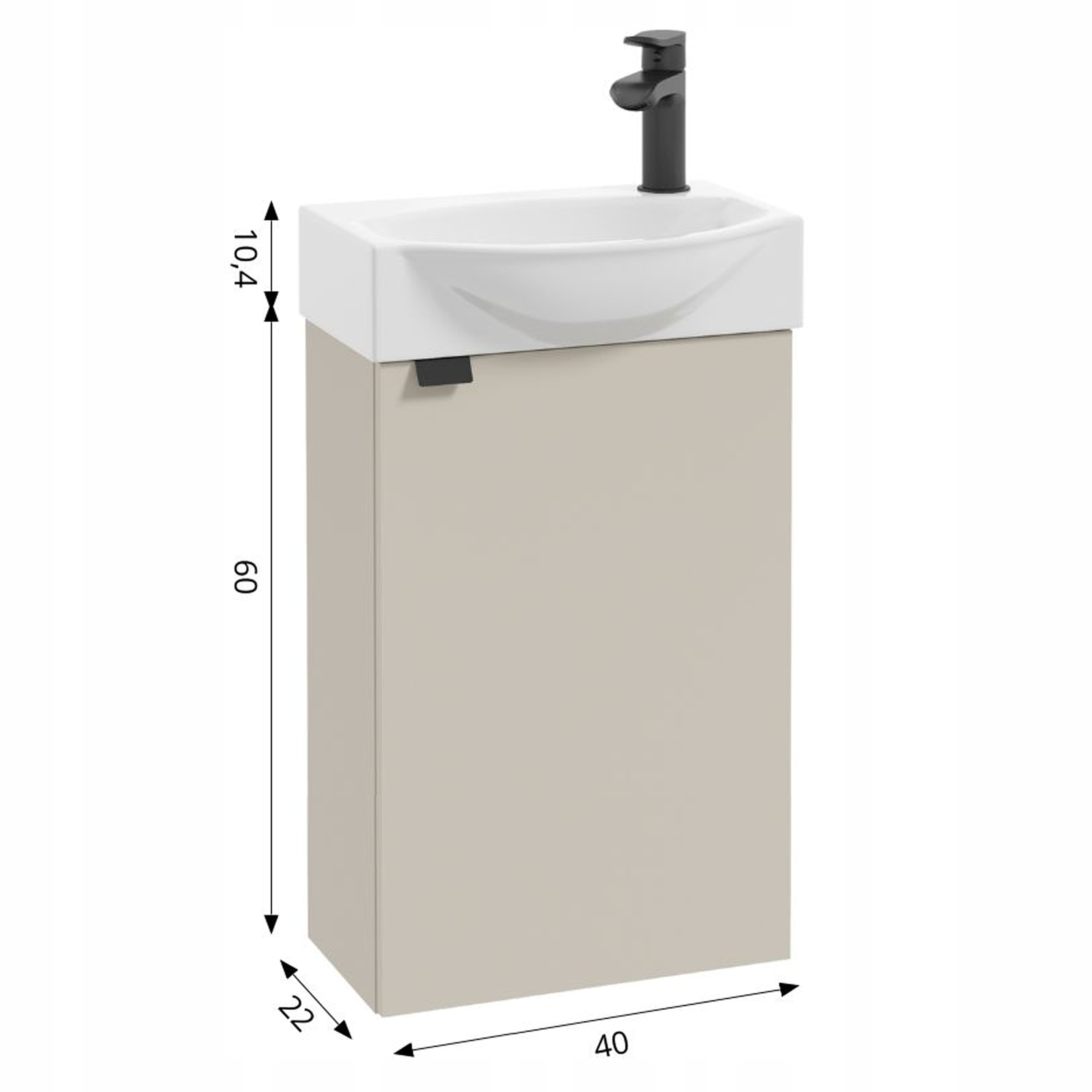 Szafka Łazienkowa z Umywalką 40 x 22 cm Wisząca Kaszmir Beżowa Mat Mała