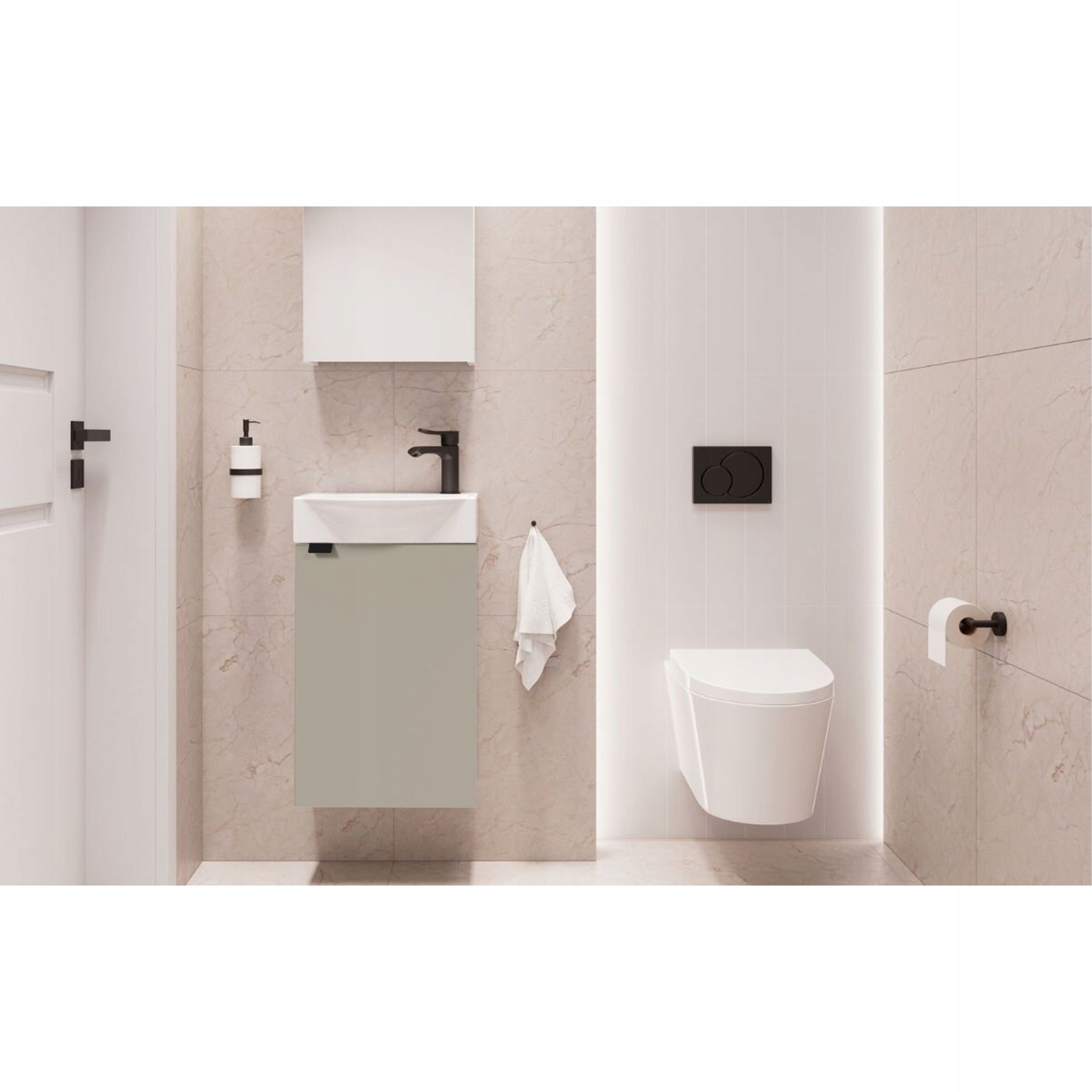 ✅ Szafka łazienkowa o szerokości 40 cm to doskonałe rozwiązanie do małych łazienek i toalet. Wyróżnia się nowoczesnym wyglądem, podkreślonym eleganckimi, czarnymi detalami.