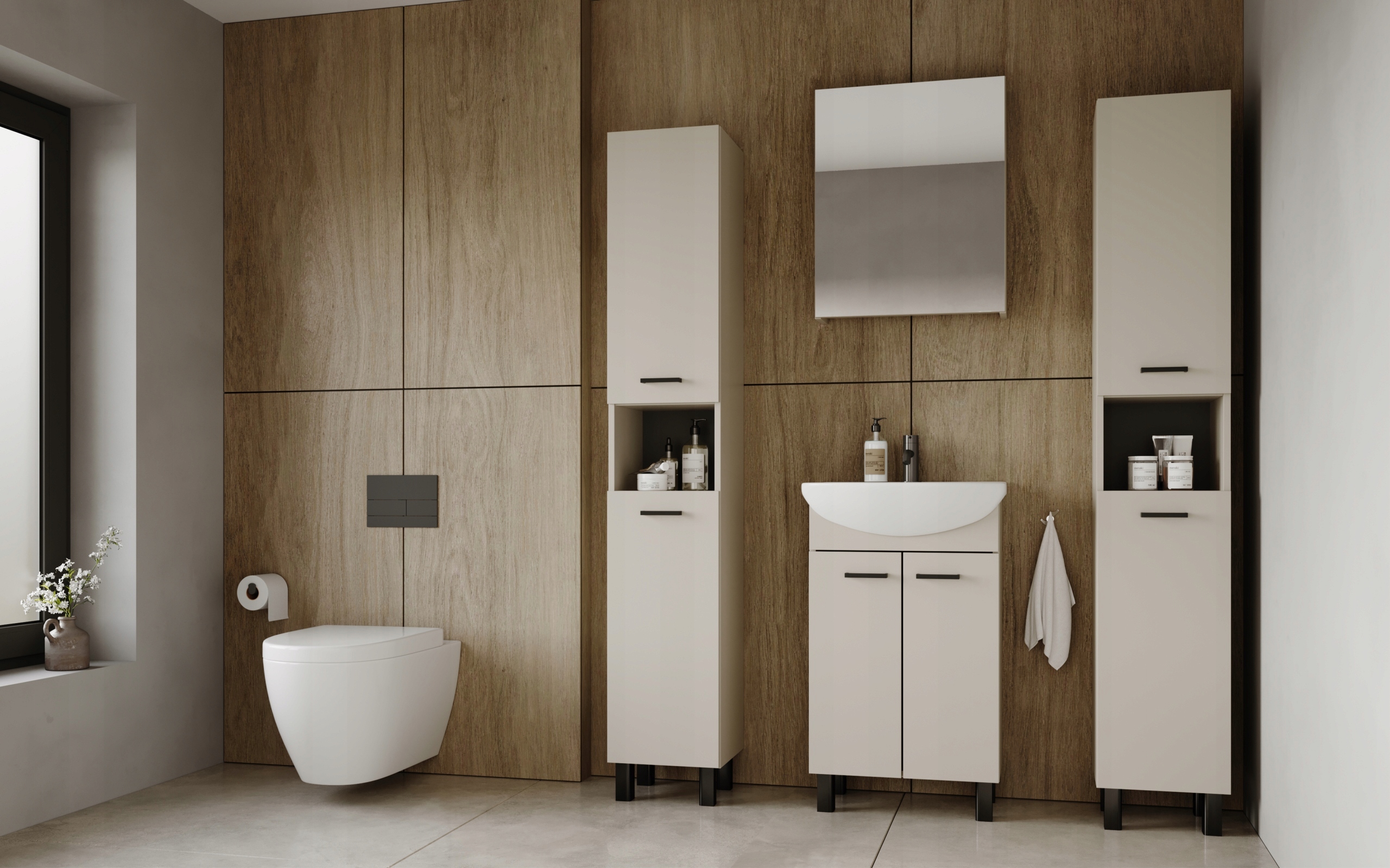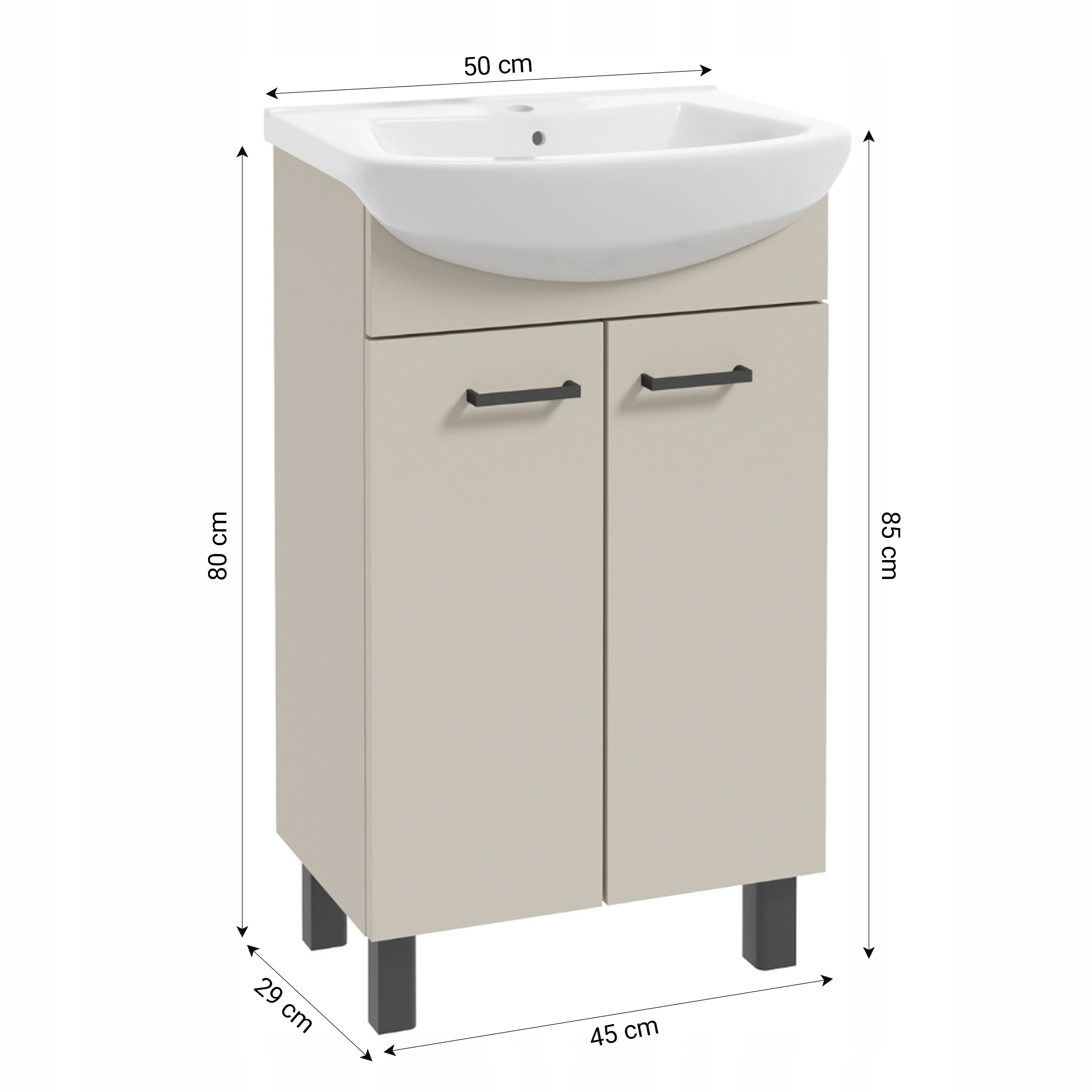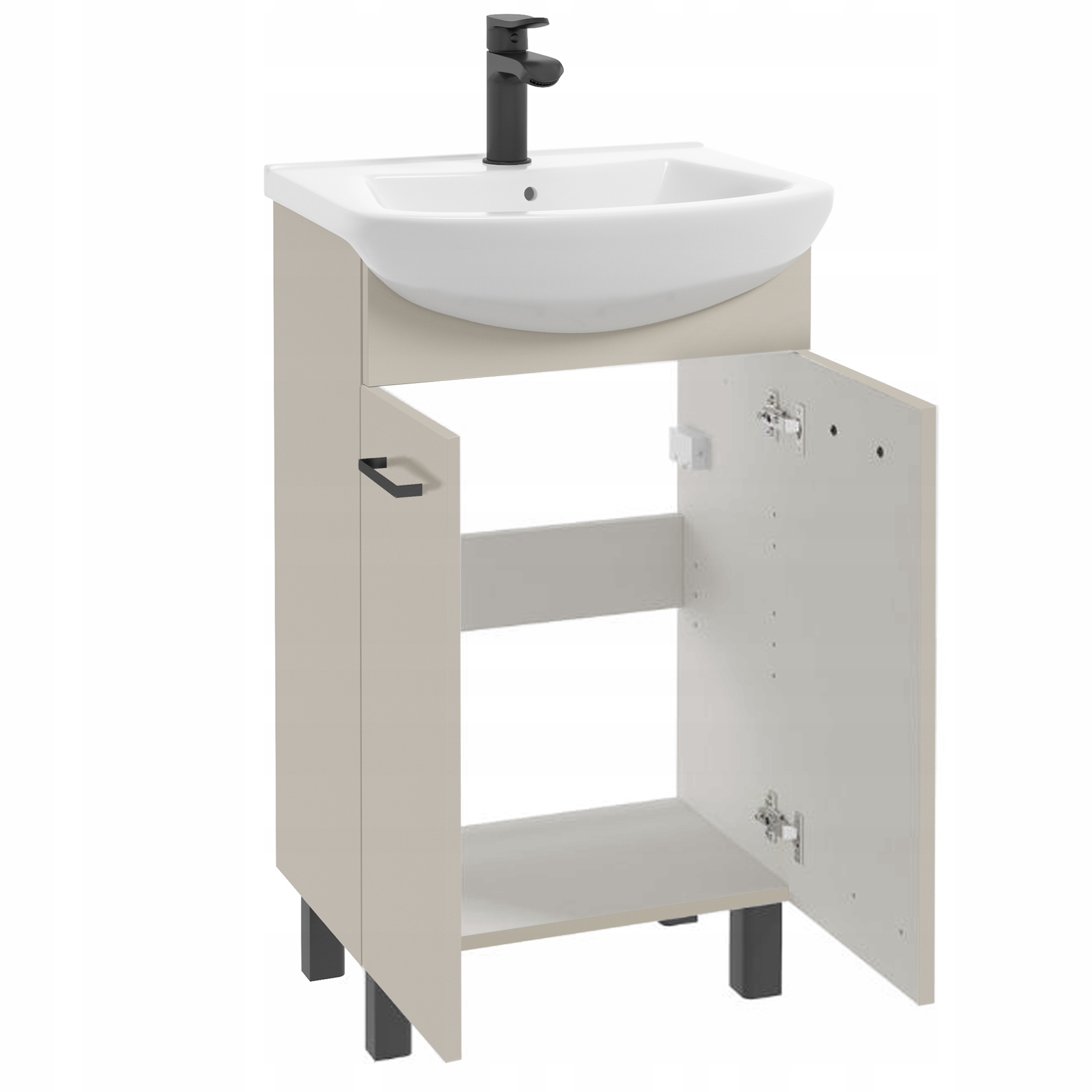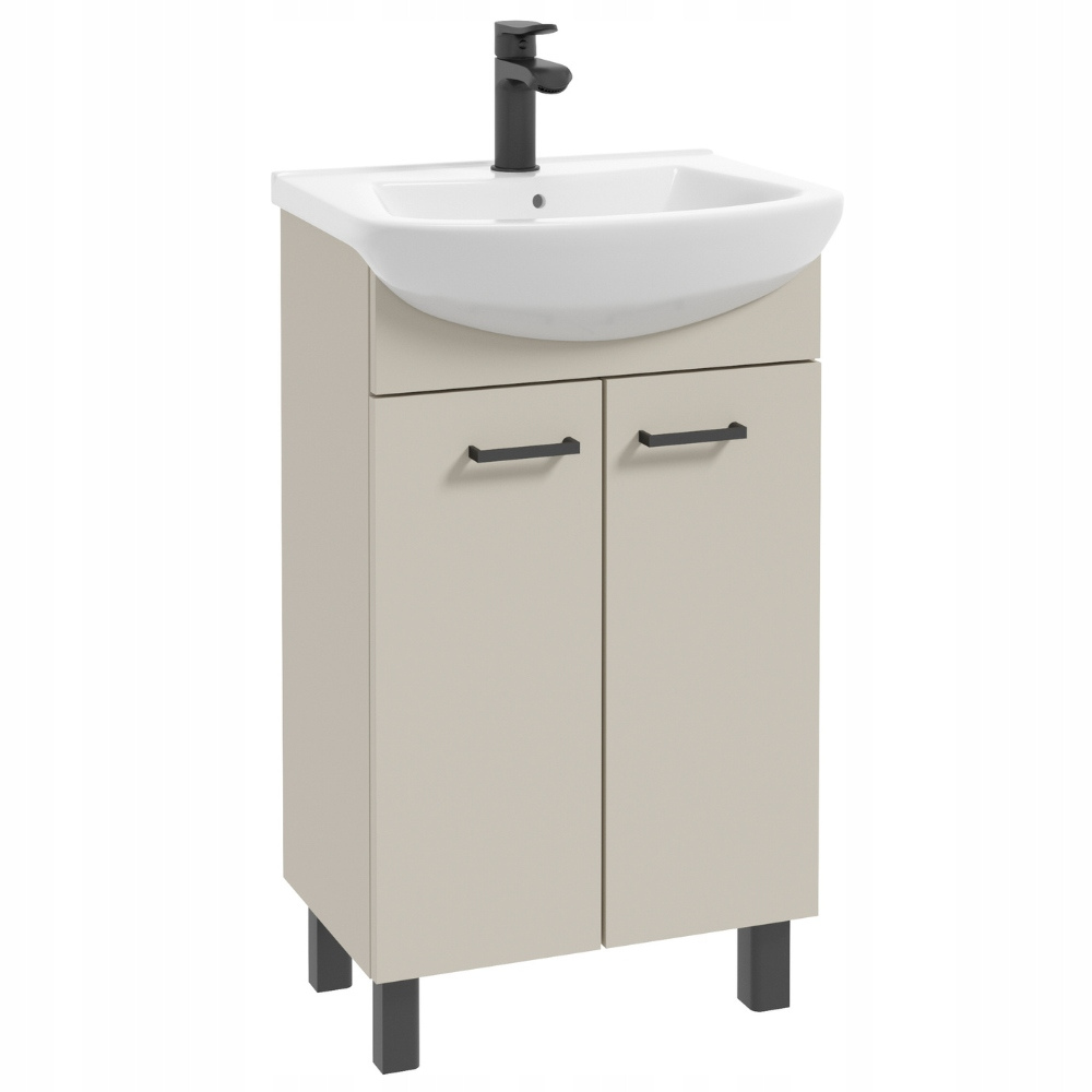 Szafka Łazienkowa z Umywalką 50 cm Kaszmir Beżowy Matowa Bateria Czarna