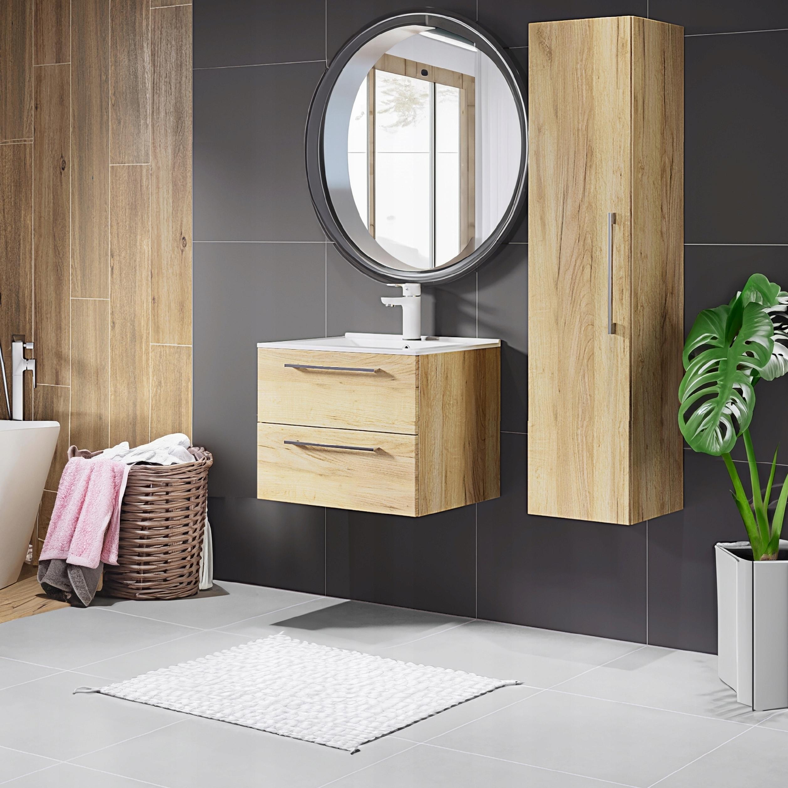 Szafka Łazienkowa z Umywalką 50 Dąb Złoty SoftClose Wisząca Bateria Chrom