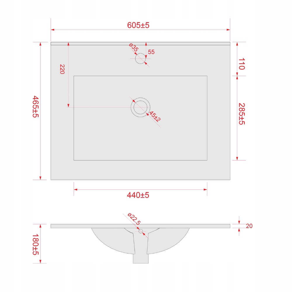 ✔️Kształt umywalki: prostokątna