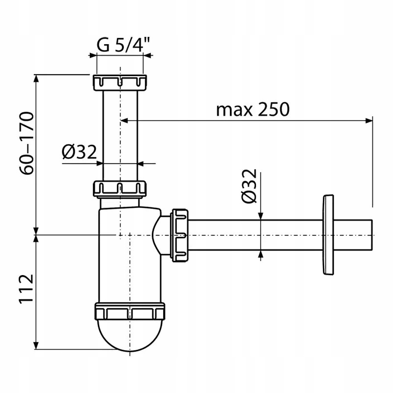 ⭐️ Półsyfon umywalkowy DN32 z nakrętką 5/4