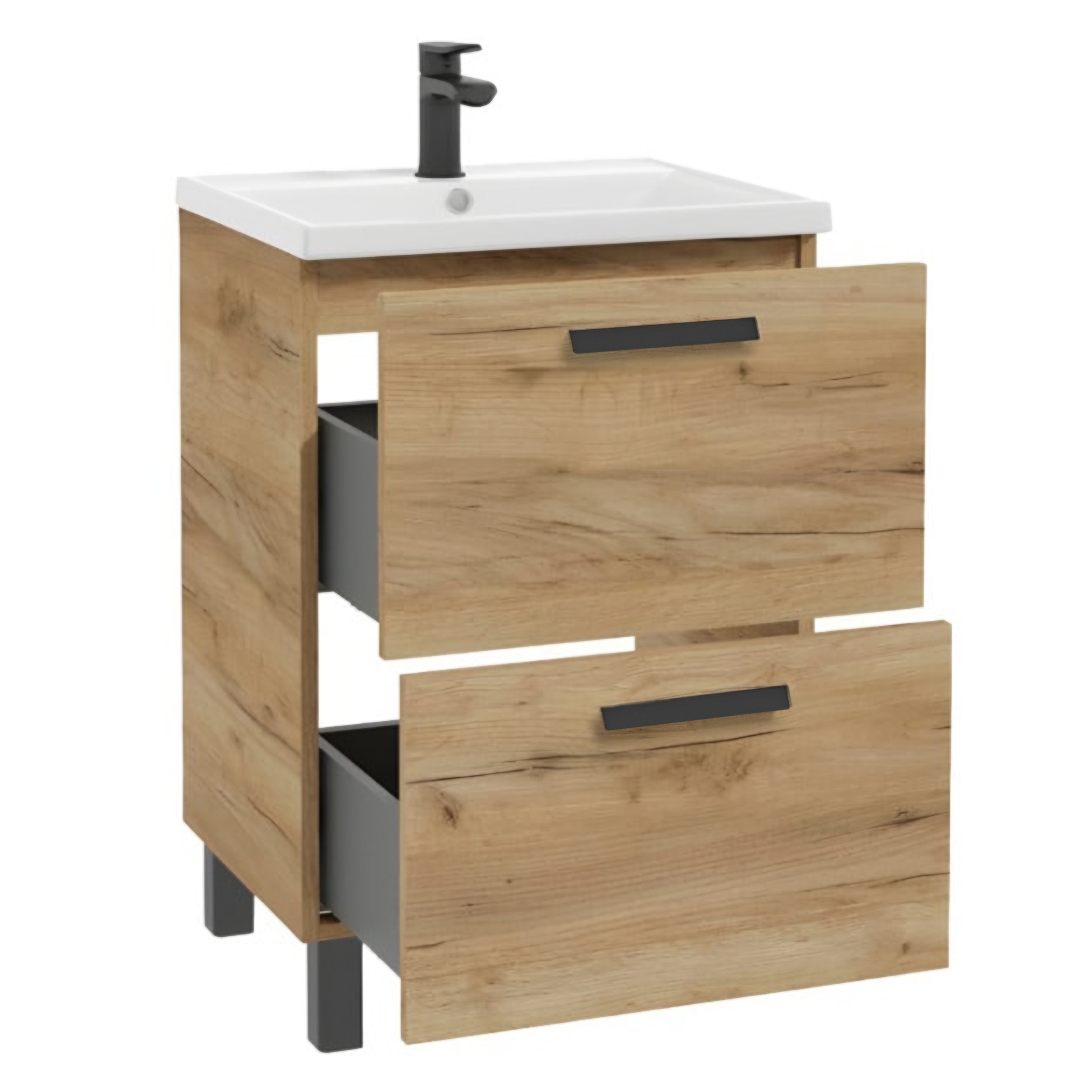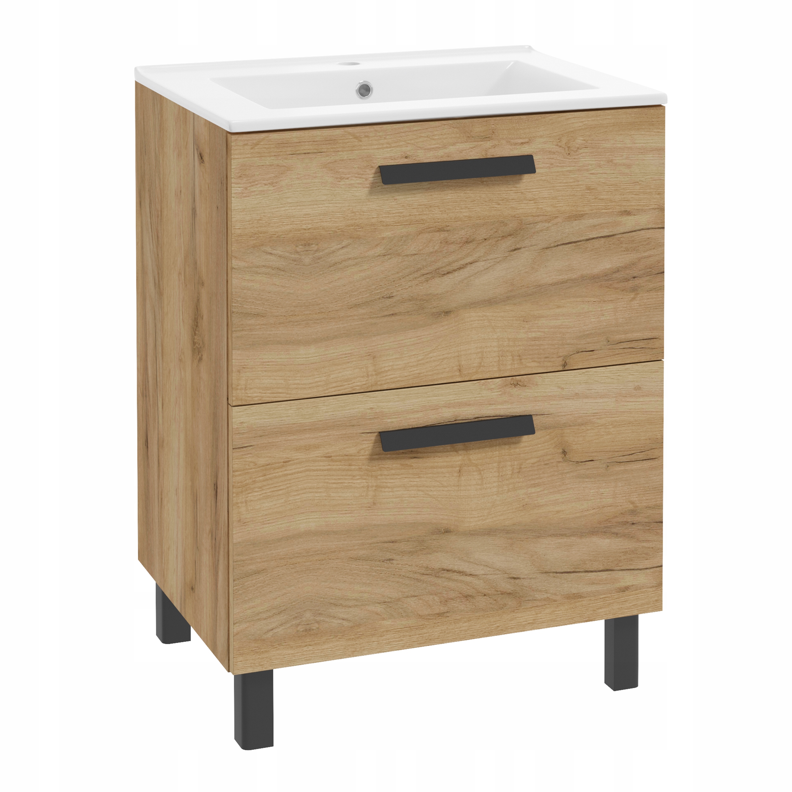 Szafka Łazienkowa z Umywalką 60 x 47 cm Dąb Craft Złoty Stojąca Szuflady