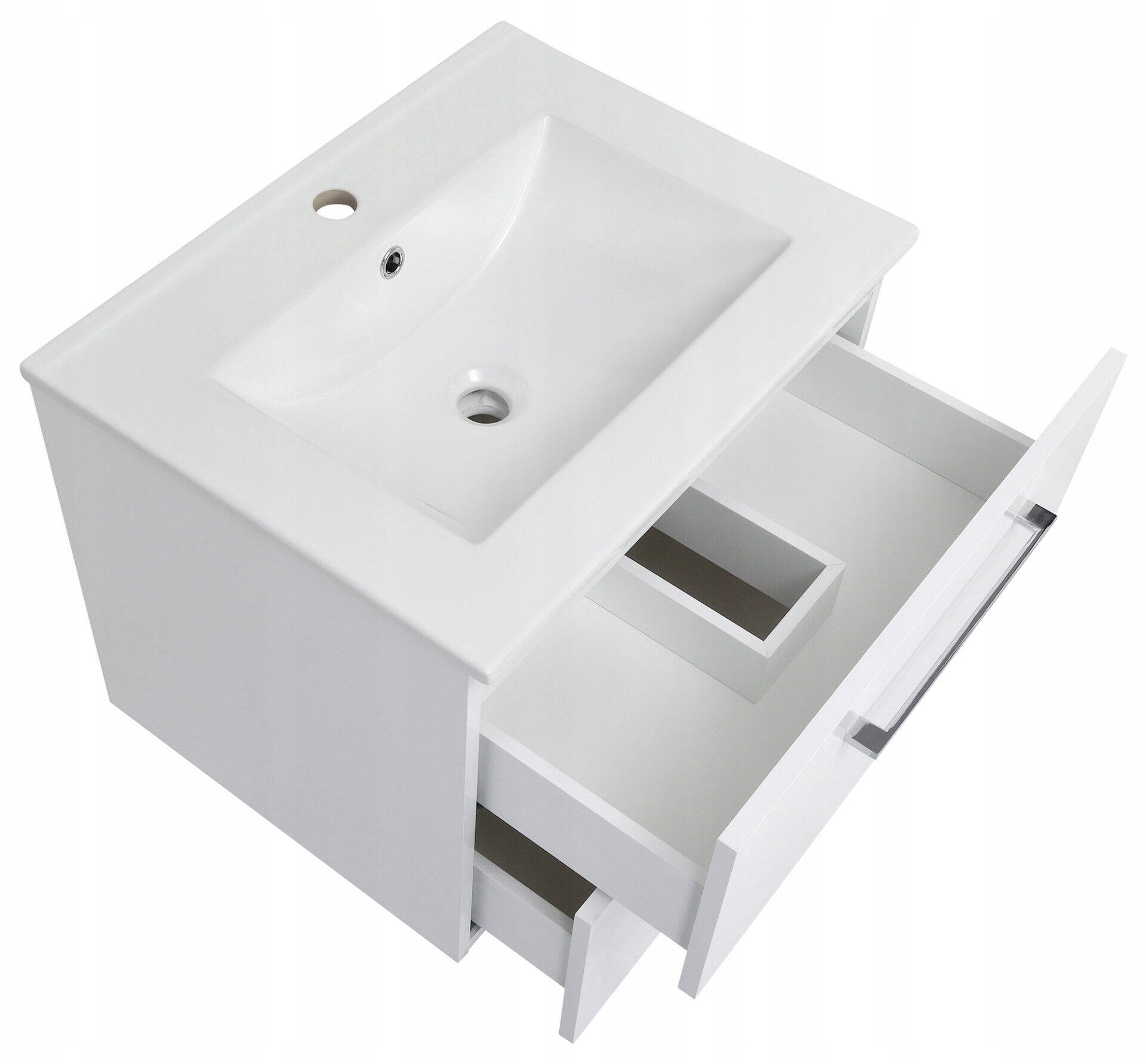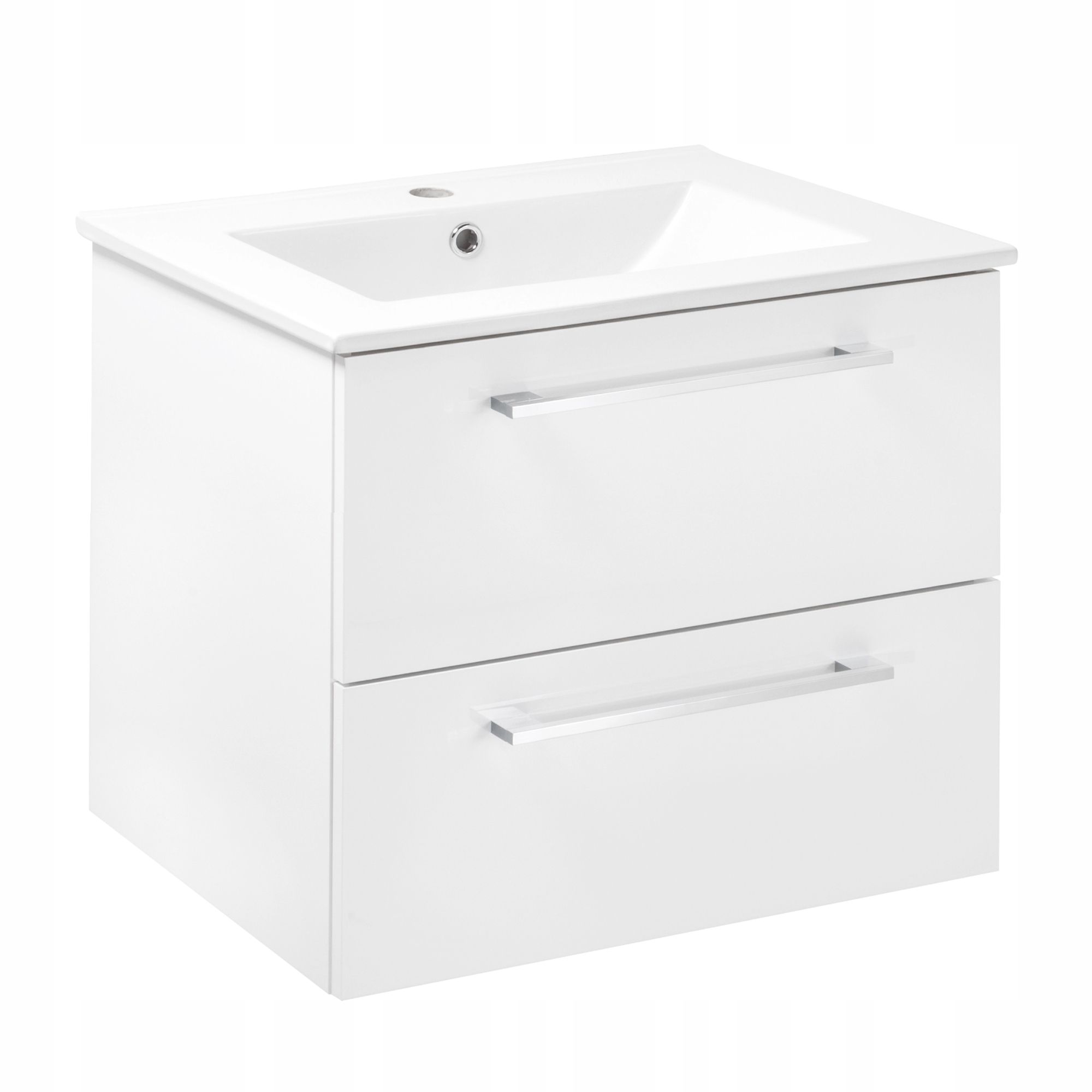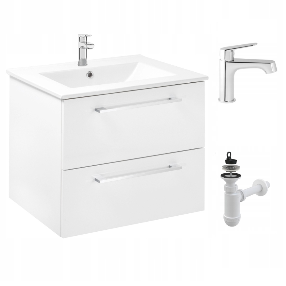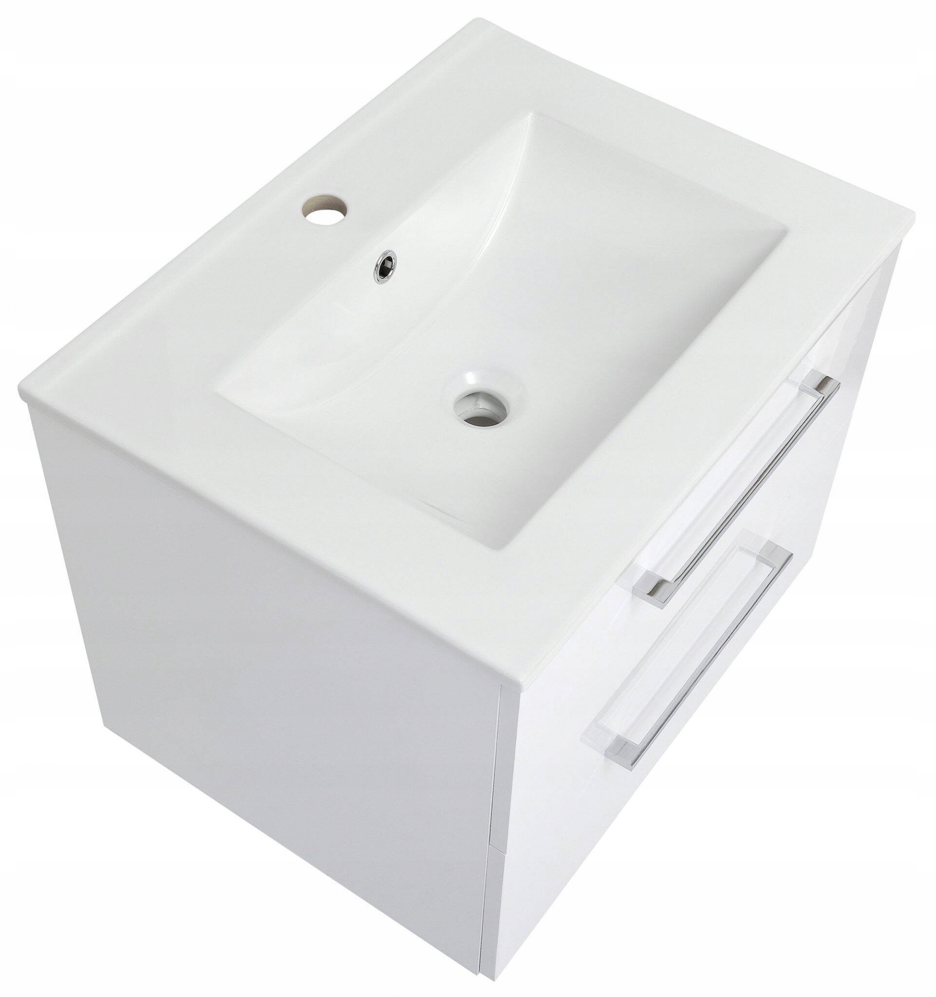 Szafka Łazienkowa z Umywalką 60 x 47cm Biała Połysk Szuflady Bateria Wysoka