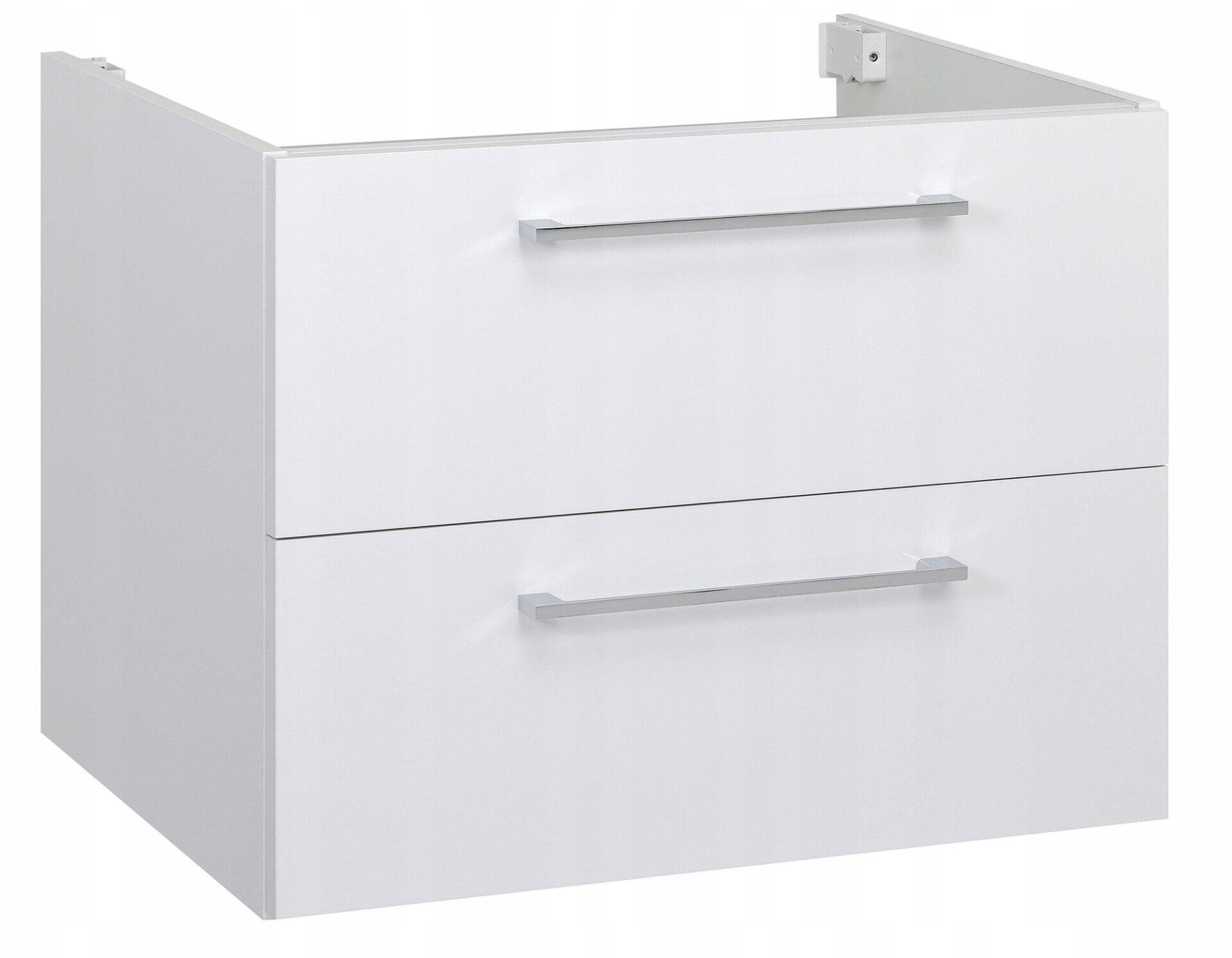 ✅ Nowoczesna i funkcjonalna szafka łazienkowa, idealna do każdego wnętrza. Zarówno front, jak i korpus wykonane są z lakierowanej płyty wiórowej w kolorze białym, co zapewnia nowoczesny, elegancki wygląd oraz trwałość.