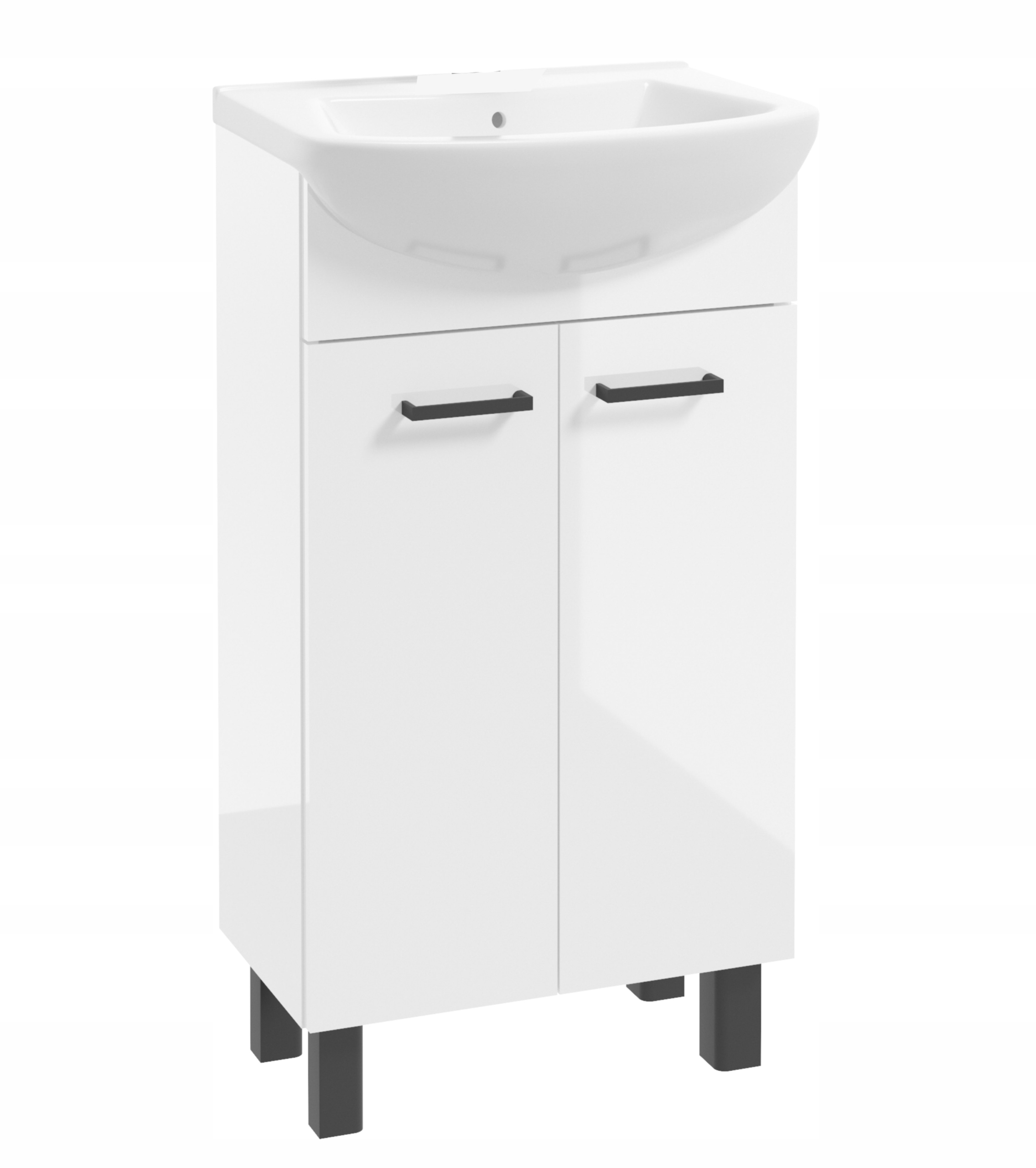✅Szafka łazienkowa z umywalką 45 cmNiepozorna i zgrabna szafka razem z wygodna umywalką tworzą idealny duet do łazienki, w której liczy się każdy centymetr.Szafka jest cała biała, ma białe lakierowane fronty. W środku do dyspozycji mamy wolną przestrzeń szafki na niezbędne akcesoria toaletowe bądź chemię.