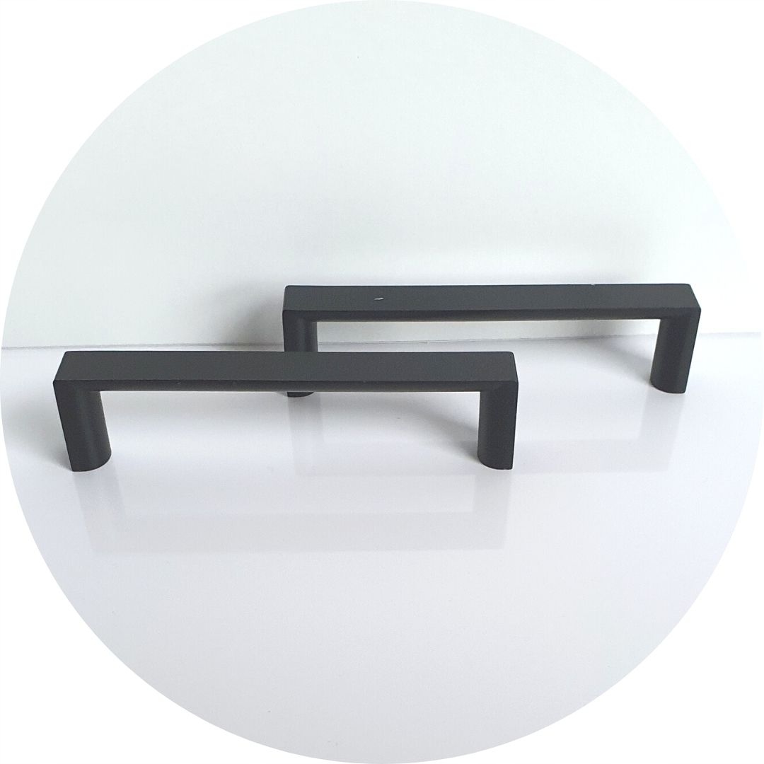 ✅Czarne metalowe uchwyty przy drzwiczkach idealnie kontrastują z całym meblem.Wraz z nóżkami w takim samym kolorze wprowadzają ład i spójność wizualną całego mebla.