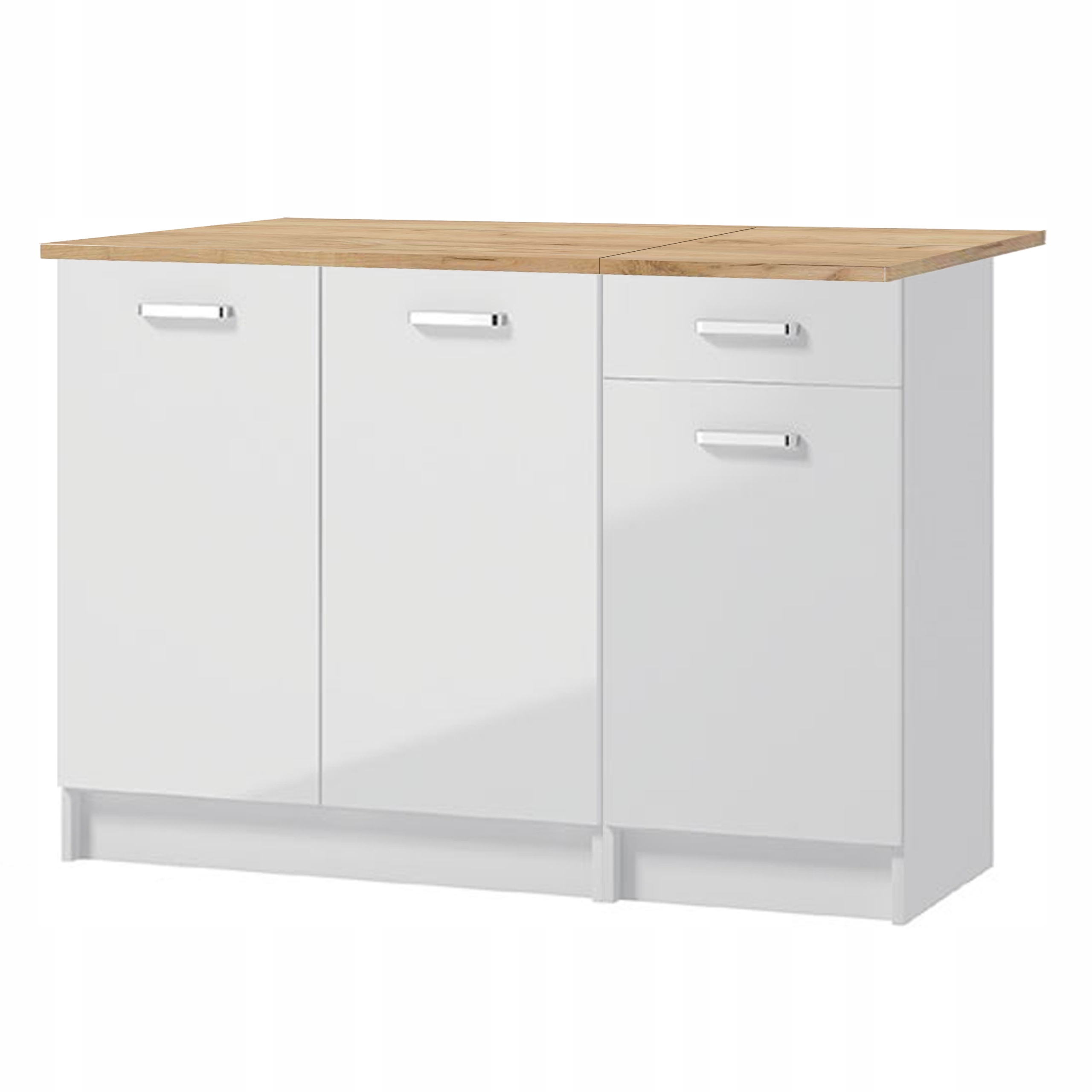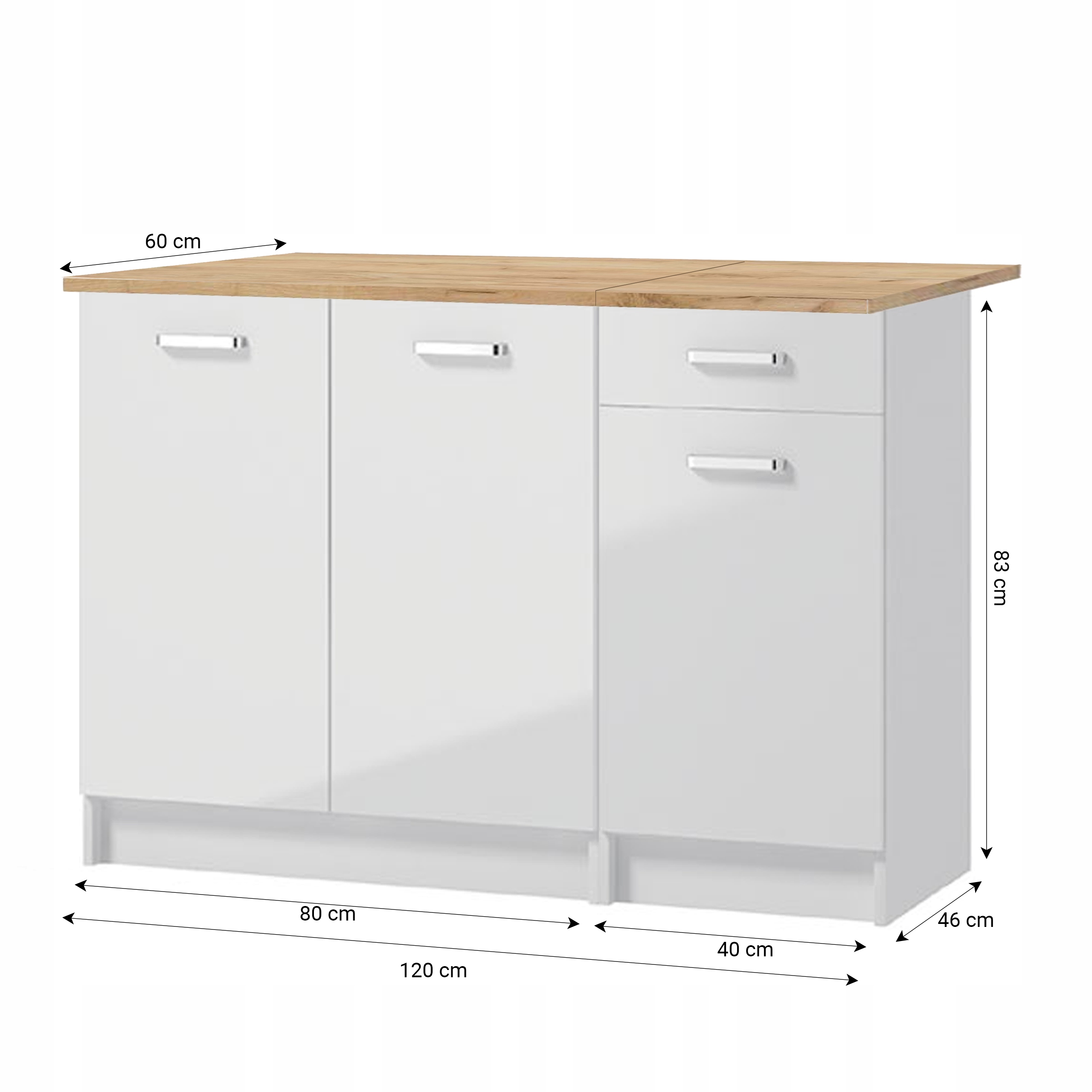 Zestaw Szafek Kuchennych 120 x46 cm Biały Połysk z Blatem Dąb Złoty Stojące