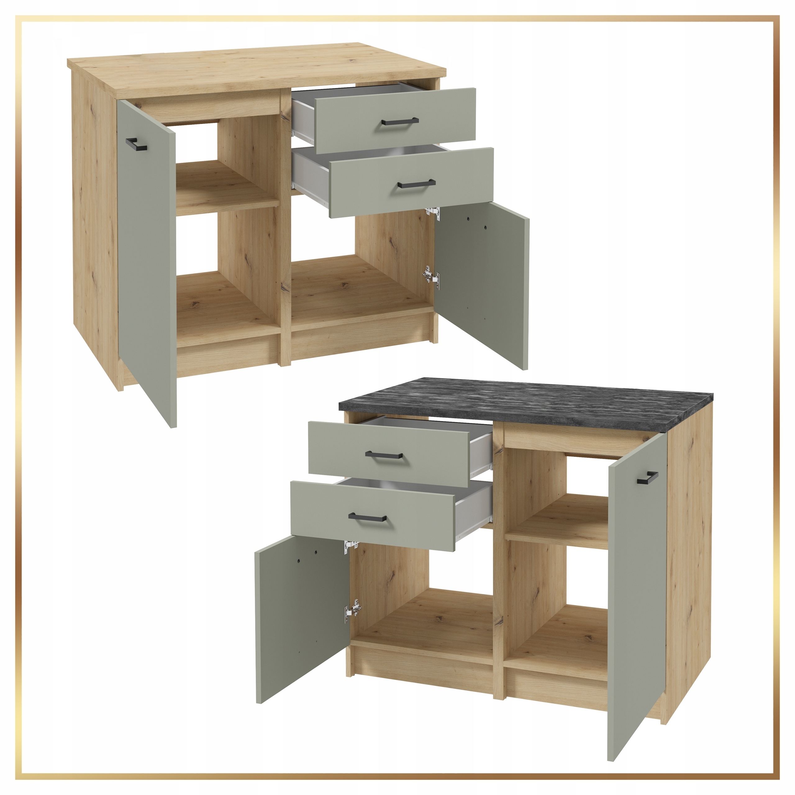 Zestaw Szafek Kuchennych pod Blat Dąb Artisan/Zielony 100 x 60 cm Szuflady